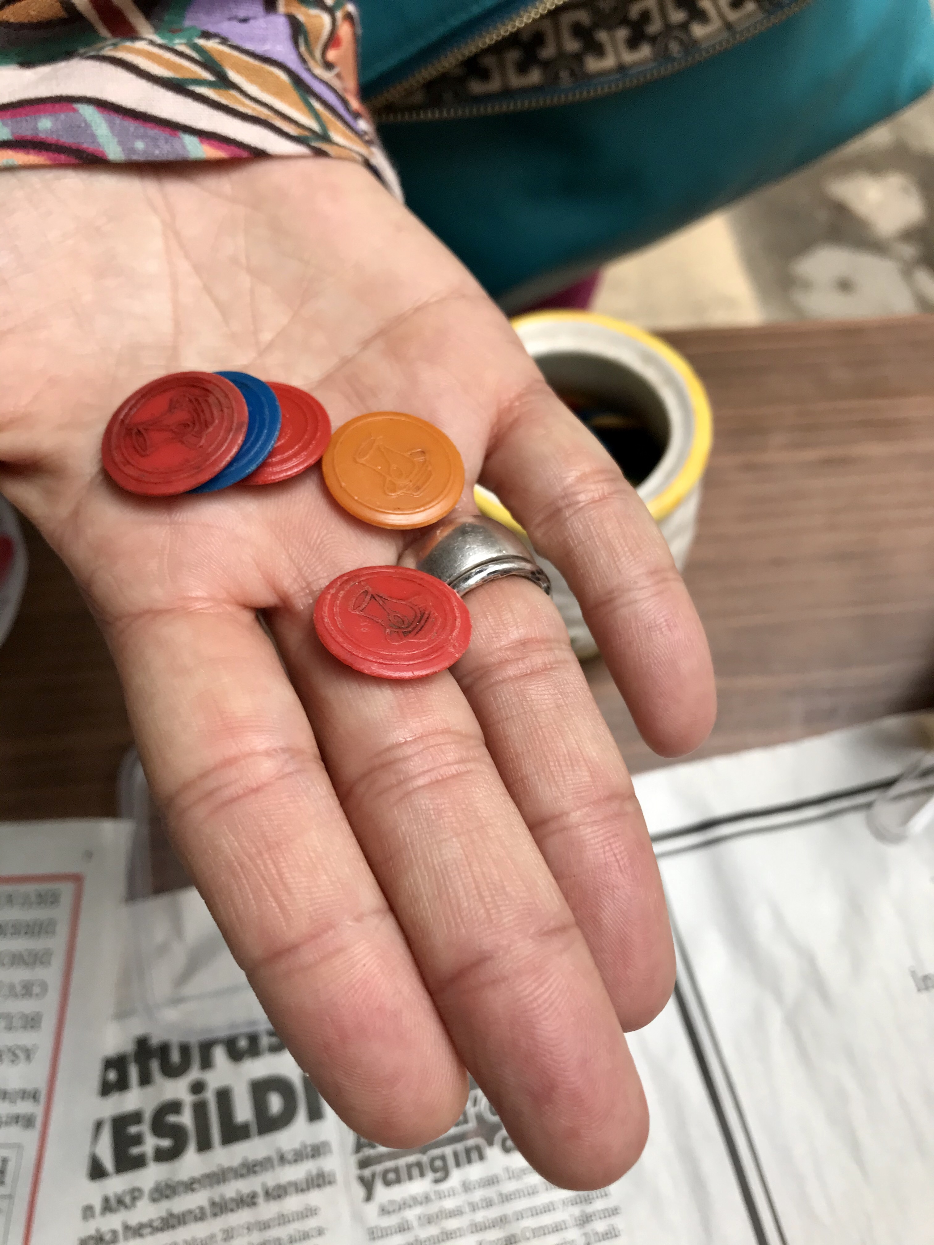 These shops are everywhere, and you see men making deliveries of tea on a tray throughout the day. Patrons usually pay ahead of time for the week or month, and get credits in the form of little tokens which they use to pay once the tea is delivered.