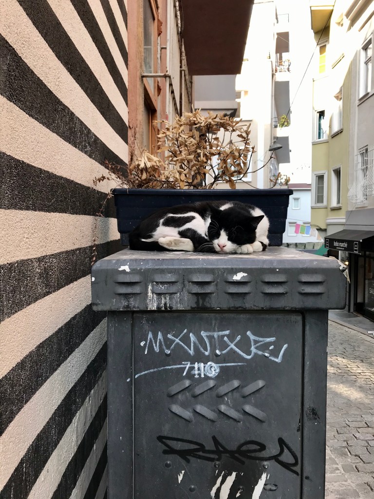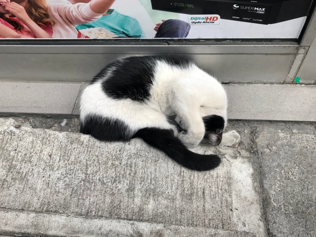 The cats all appear to be well taken care of (some too well taken care of from the looks of it) by locals. You’ll find water and cat food placed out for them. You’ll also see people stopping and petting the cats. How well these cats are cared for by the people shows you the kind of people Istanbullers are.
