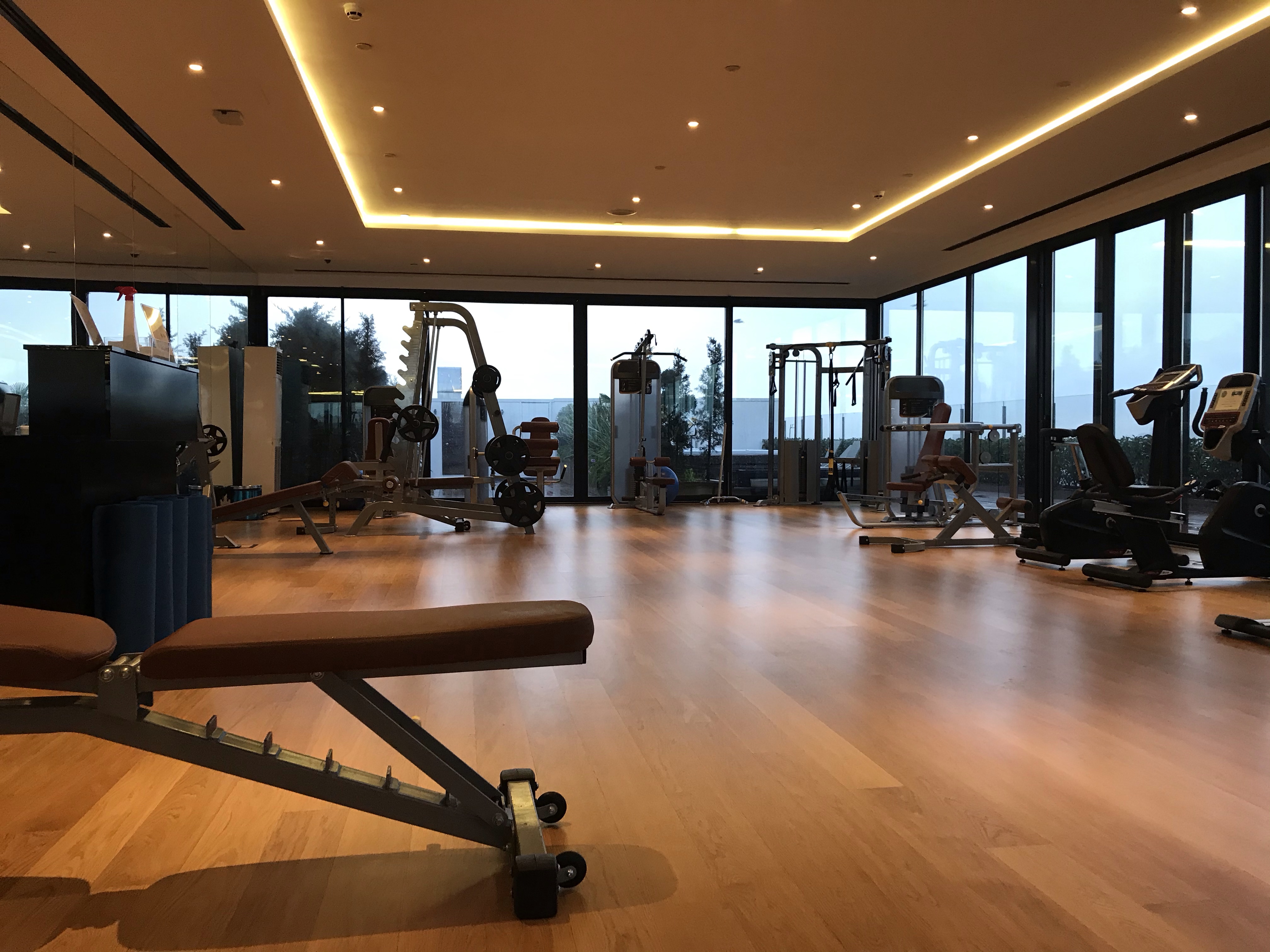 Hotel gym has all the equipment one would need (not pictured are free weights and kettlebells).