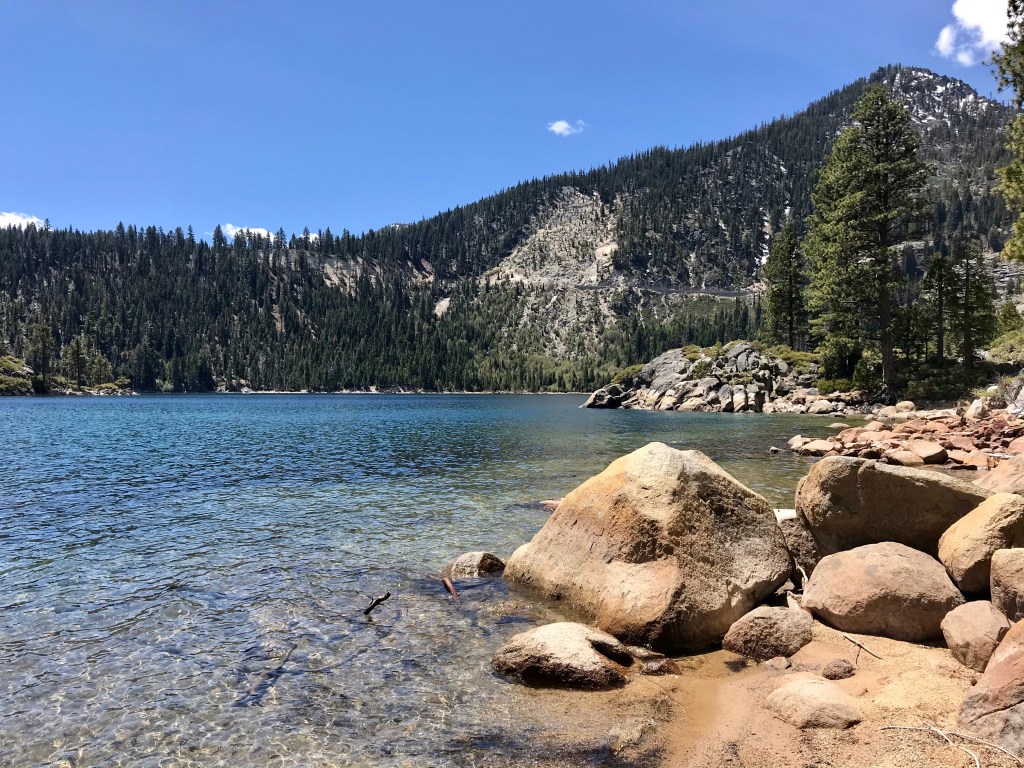 After the initial descent down to the Emerald Bay Beach, the relatively flat trail hugged the lake for the first half of the hike.