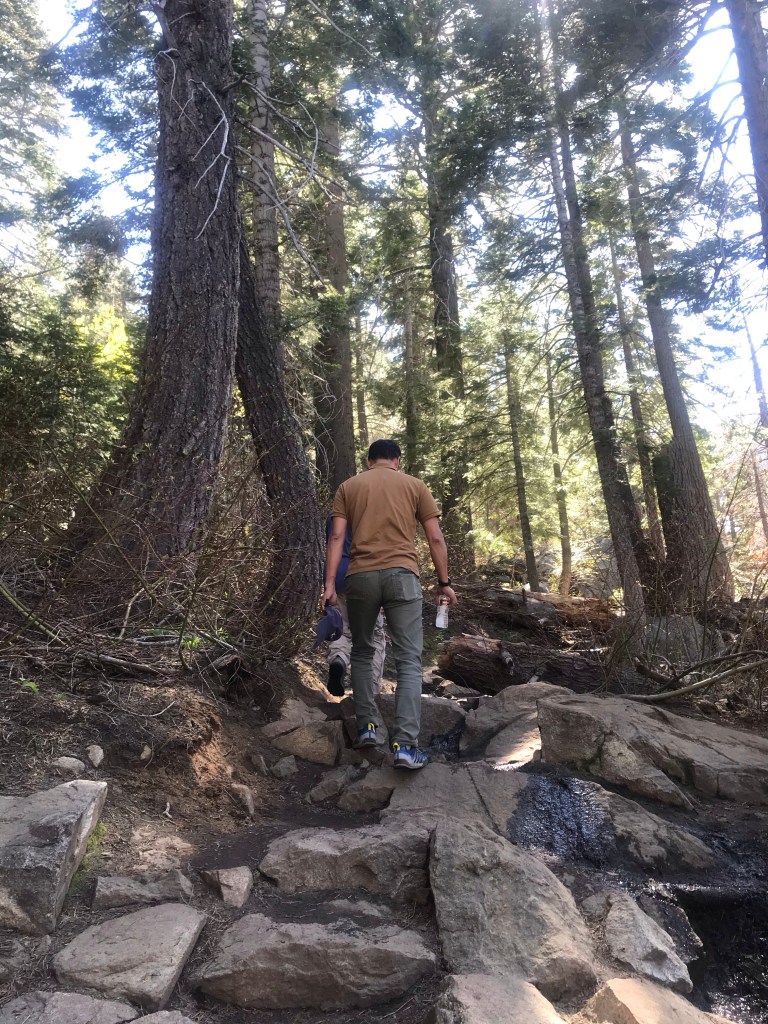 Two “baby” hikes. For our last day in Tahoe, we decided to go on a hike that the kids would be able to do. After some research, I decided on the Cascade Falls trail. A baby hike of just 1.4 miles out and back.