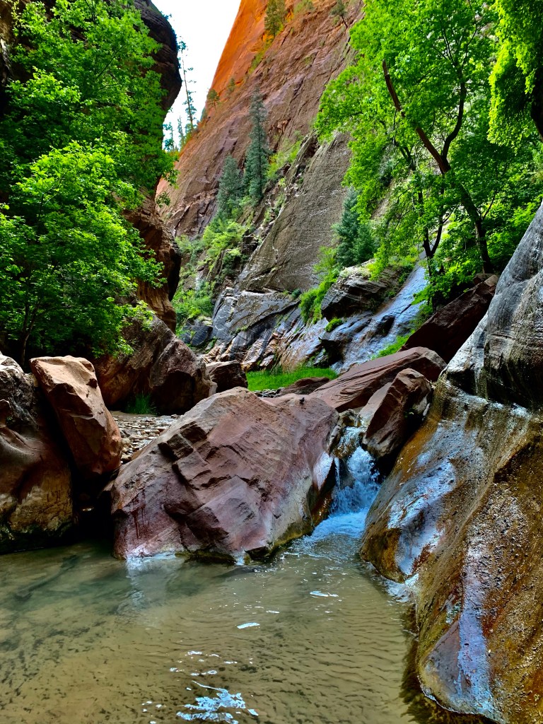 Given the 90-100F June temps, hiking in the canyon in 50F water seemed like the only logical choice. It doesn’t hurt that the Narrows is by far my favorite hike in the park. Joe’s partial to hiking Angels Landing, but not in 90+ degree weather.