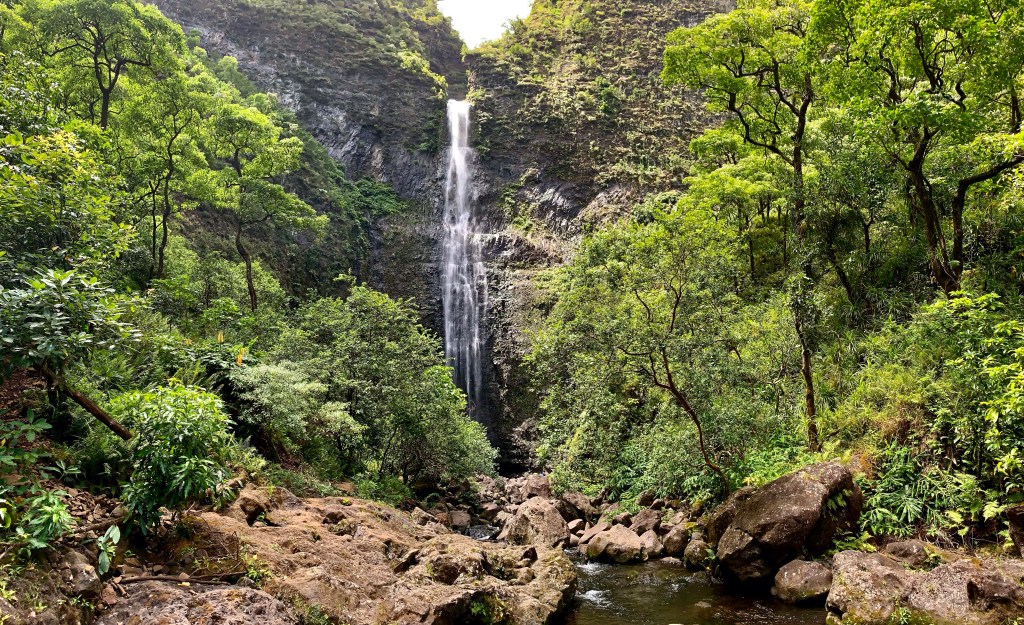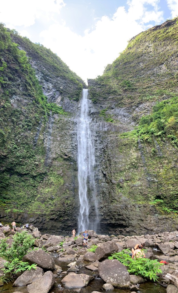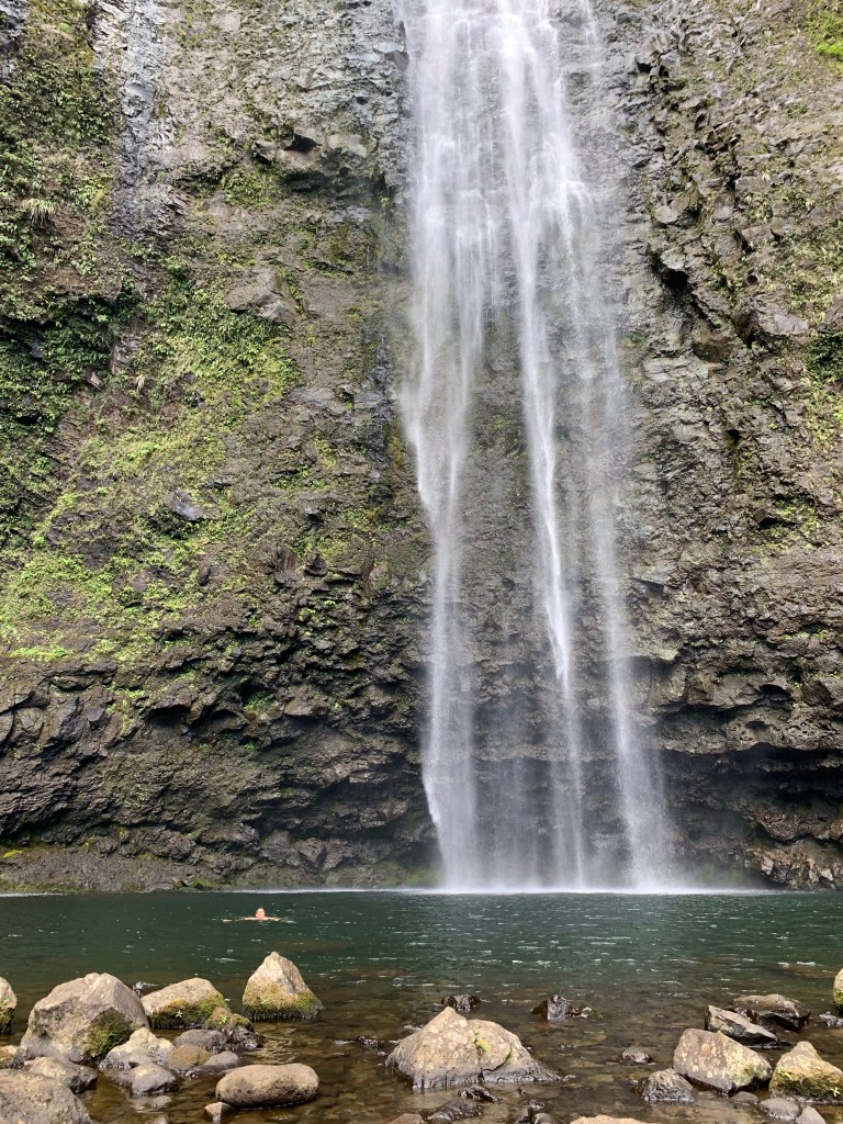 Hanakapi‘ai Falls stands 300 feet tallJoe took the opportunity to jump into the pool to cool off. I opted to stay on land to avoid any organisms from entering any of my orifices. Let’s just say, someone had a brief GI incident later that night, and it wasn’t me.