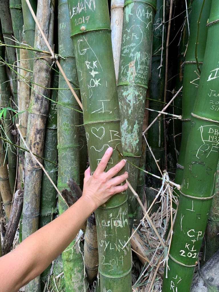 Guava trees are plentiful along the trail. Fruit is very fragrant, but not as sweet as I would like.There are groves of giant bamboos