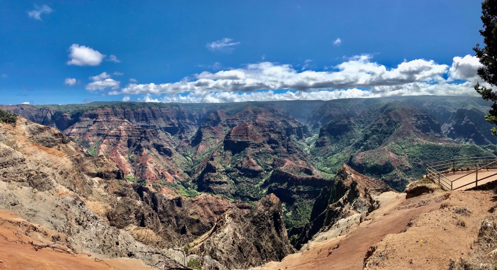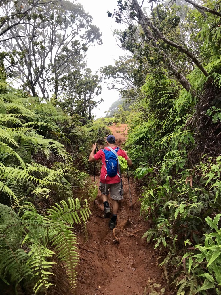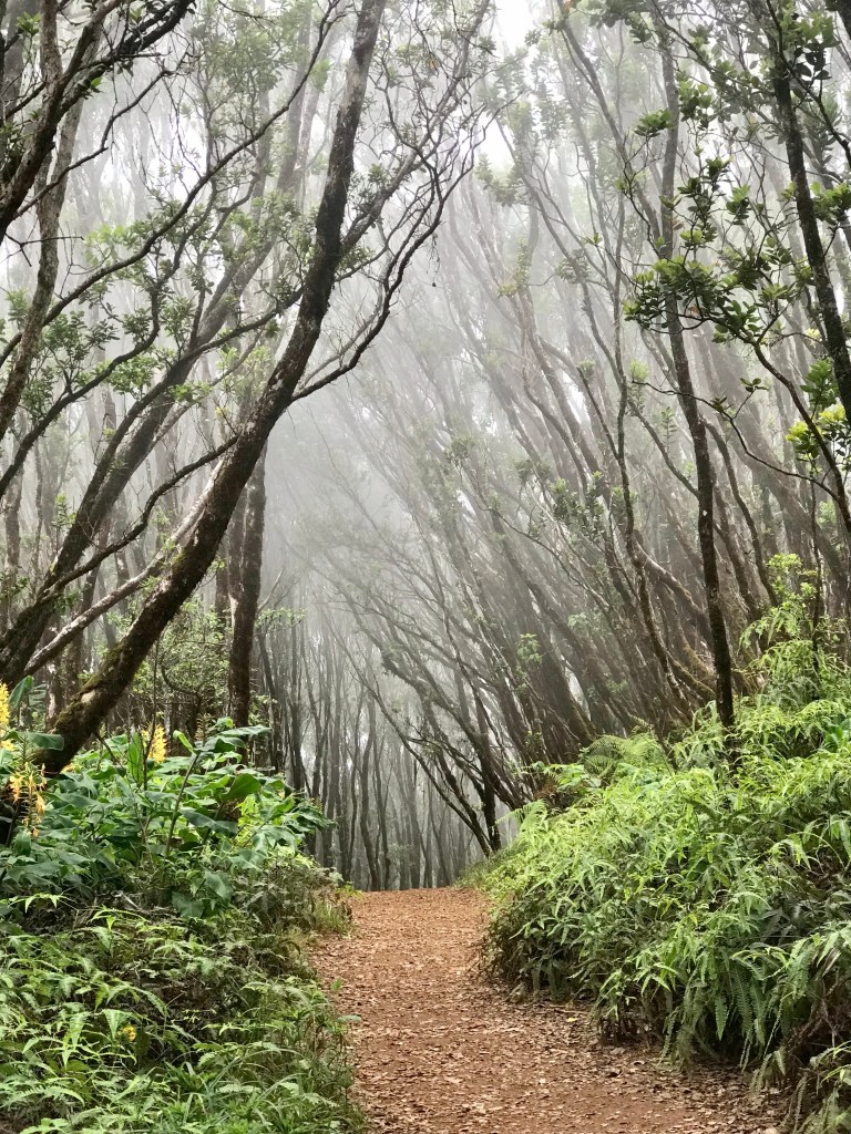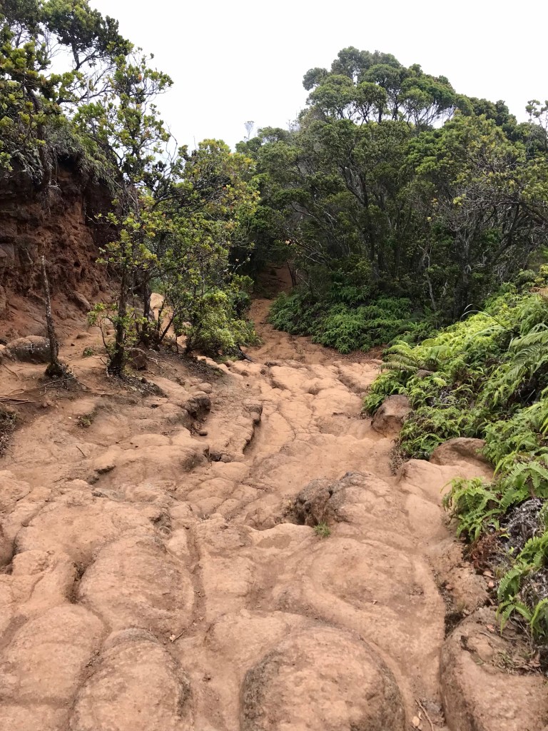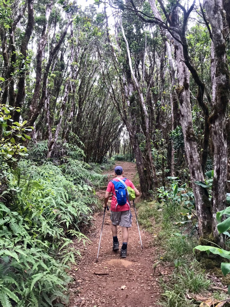 Since we only have 2 more days of hiking on the island, I decided to push the agenda. I have 5 trails on my hike list. All 5 located in the Waimea and Koke’e State Parks. However, I really didn’t nail down a must do hike. So I was still trying to figure it out on our way there. I needed to take Joe’s ankles into consideration. Too ambitious a hike will spell trouble, and unfortunately, I only know ambitious hikes. So I opted for the least strenuous hike with the option of turning around early without missing much, i.e., a dramatic view or towering waterfalls. Pihea trail it was. It leads to a swamp often enshrouded in fog. Nothing to see there.