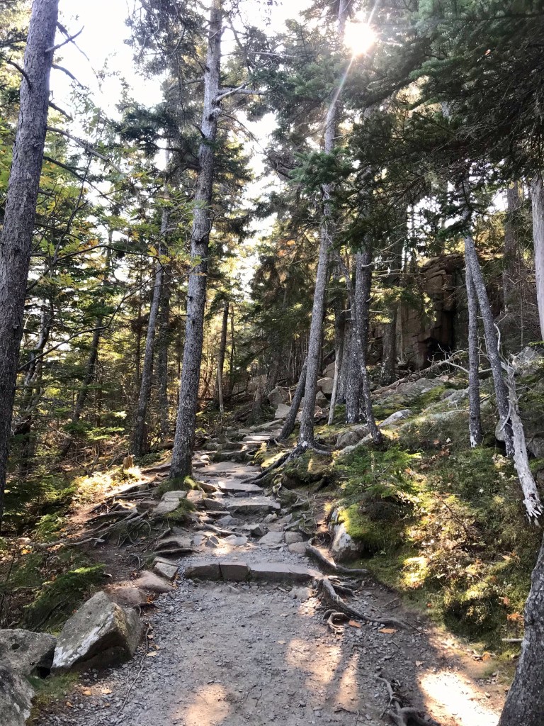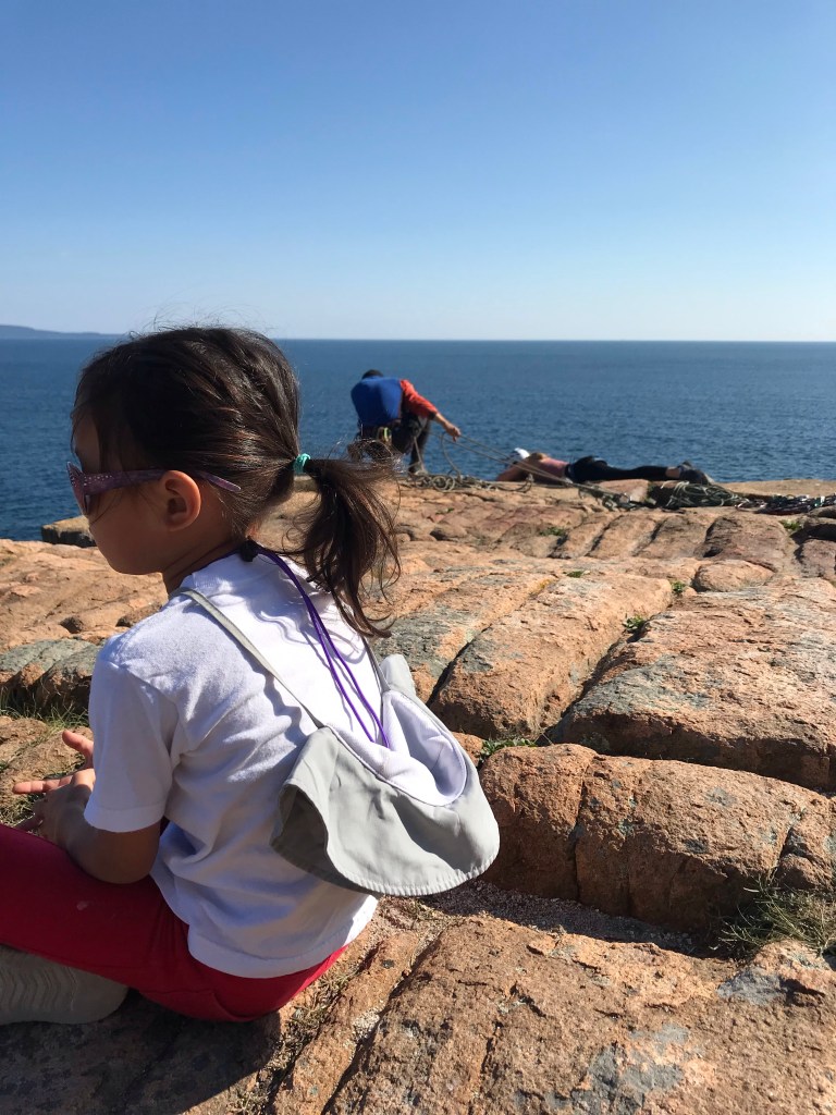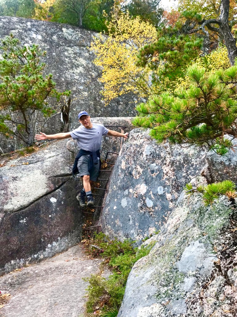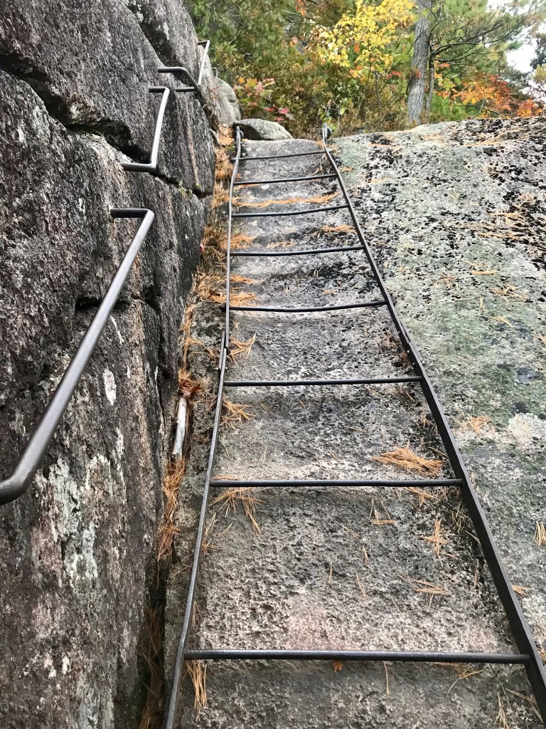 After dropping off the kids at the hotel pool for the afternoon, the rest of us went on a real hike. The Dorr Ladder trail is only a 2-mile in-and-out, but is not a trail to be underestimated (the trail is rated as ‘hard’ on AllTrails). This is one of the iron rung trails that Acadia National Park is known for – the other two better known iron rung trails for adrenaline junkies are the Precipice and Beehive.
