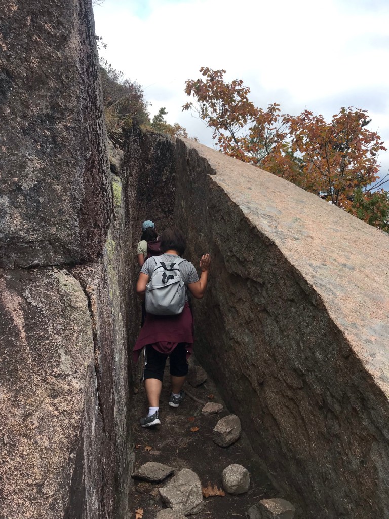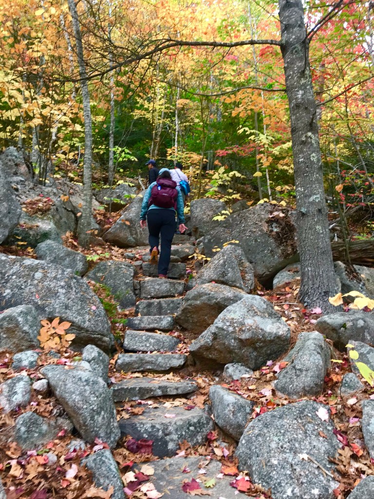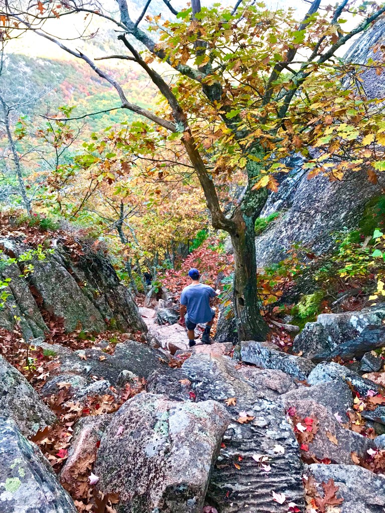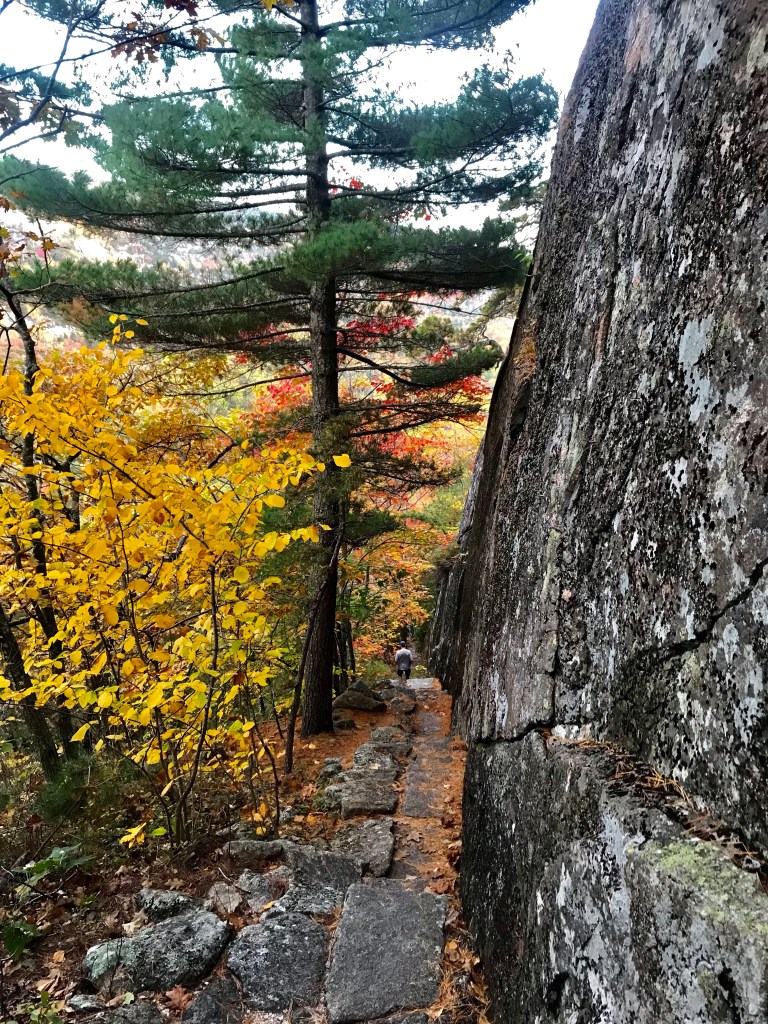After dropping off the kids at the hotel pool for the afternoon, the rest of us went on a real hike. The Dorr Ladder trail is only a 2-mile in-and-out, but is not a trail to be underestimated (the trail is rated as ‘hard’ on AllTrails). This is one of the iron rung trails that Acadia National Park is known for – the other two better known iron rung trails for adrenaline junkies are the Precipice and Beehive.