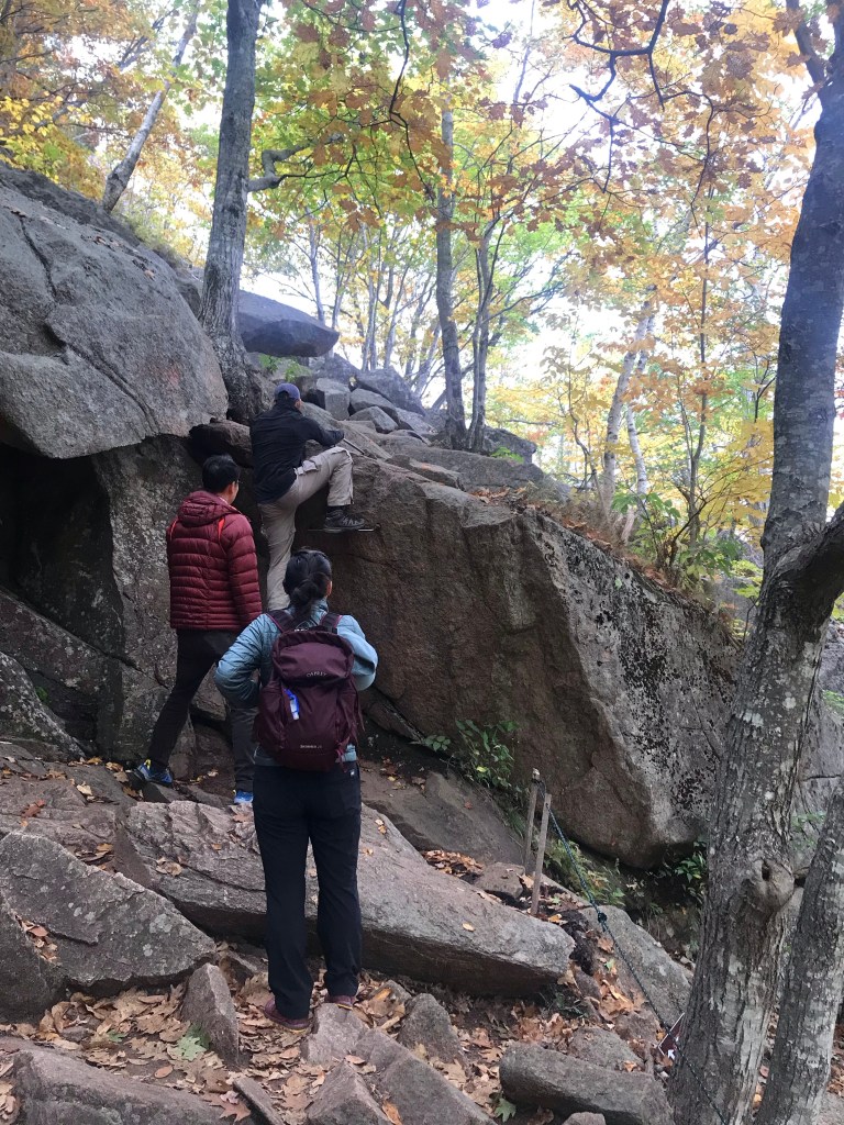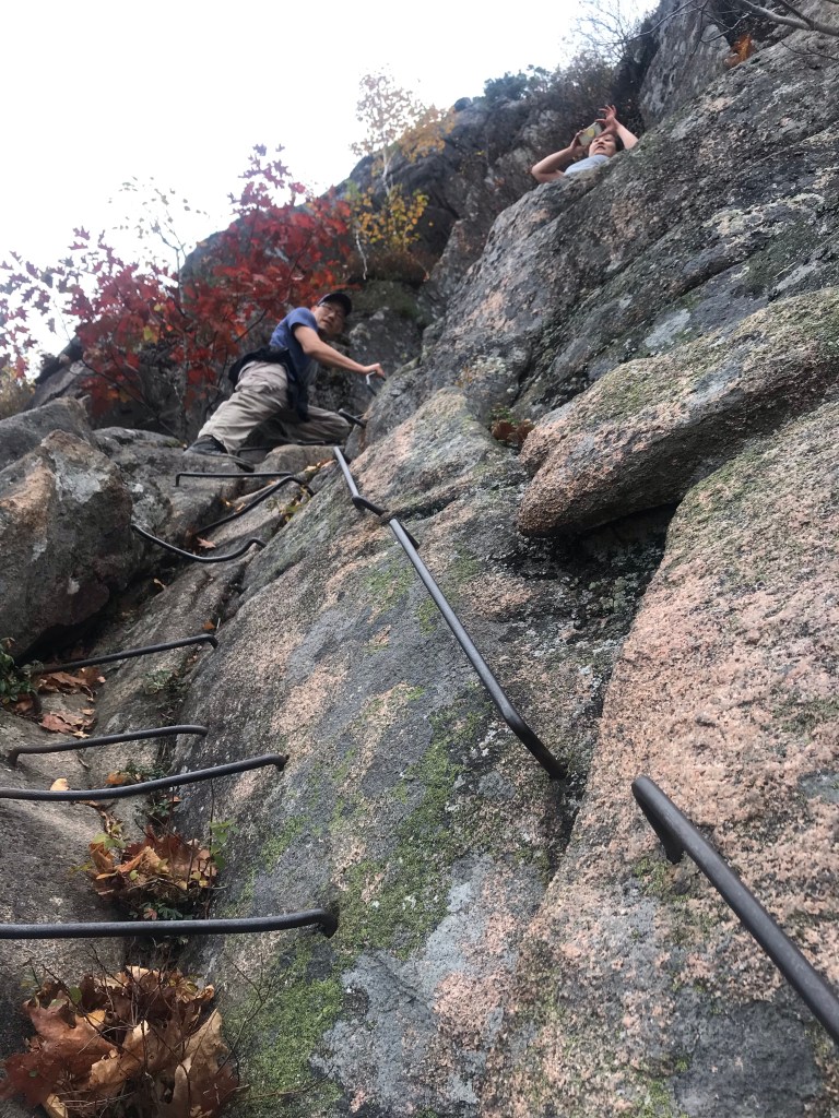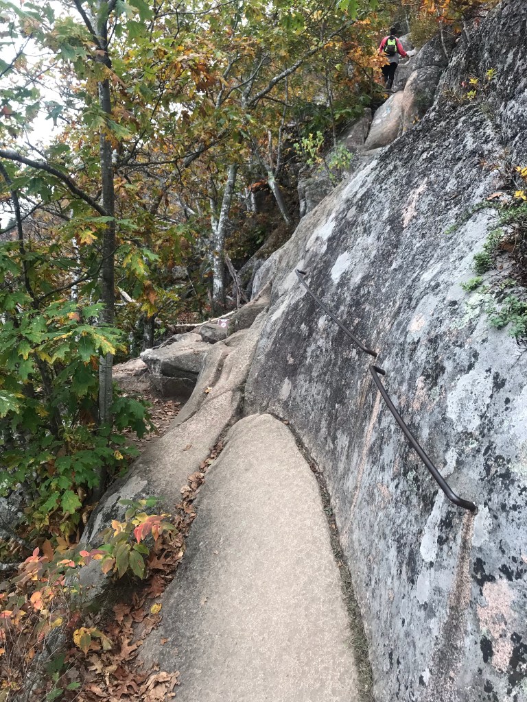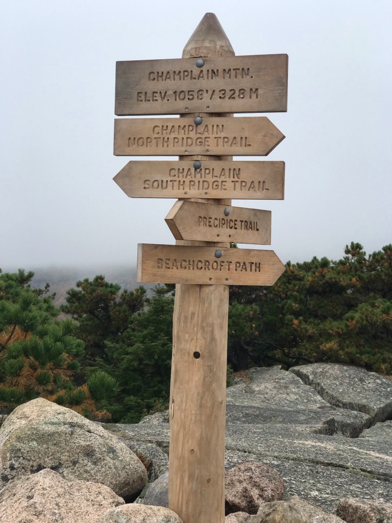 First, the Precipice trail, a vertical climb of 0.9 miles to Champlain Summit at 1,058 ft, involves a lot of rock scrambling and iron-rung assisted climbing.