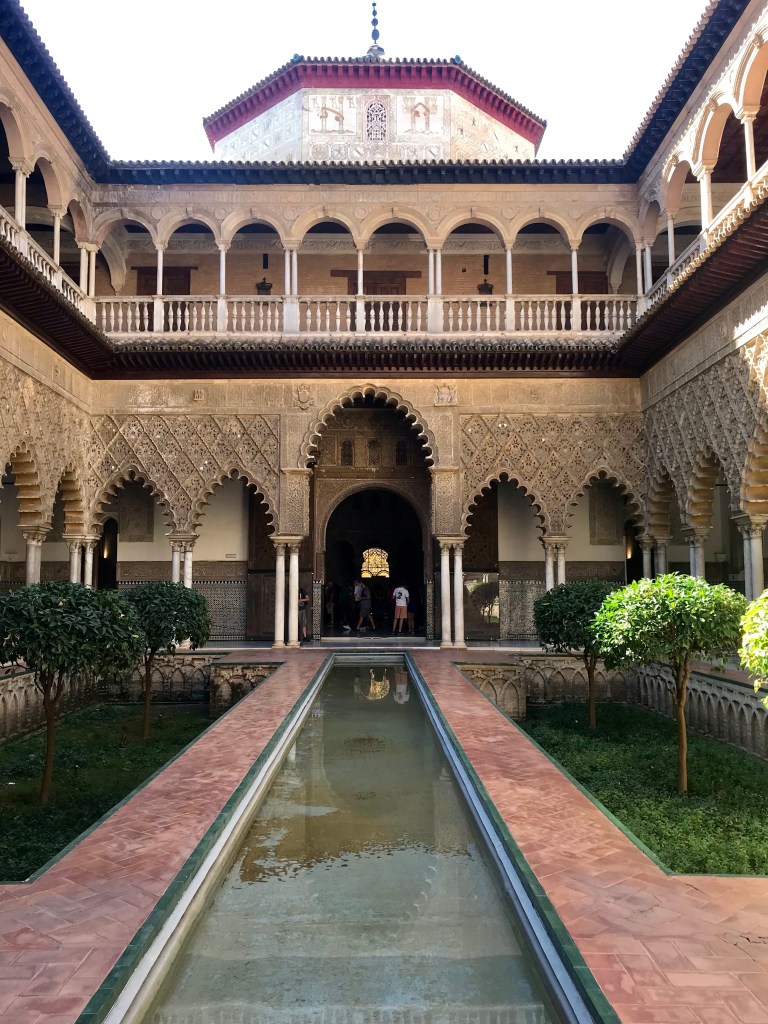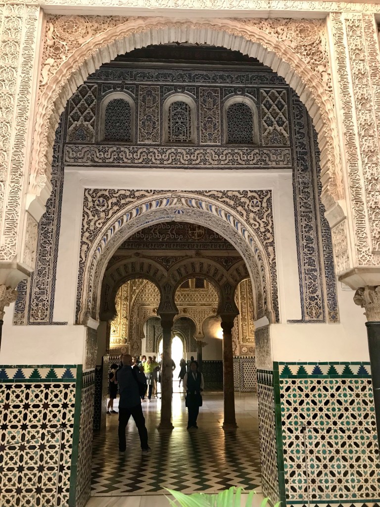 Before entering the Royal Alcazar, Joe and I had expected to see a palace of Moorish design. However, we were surprised to find out that the palace was commissioned by Spanish royalty, King Pedro I, to build a Moorish styled palace that also incorporated Christian gothic designs. This particular style has a name – Mudejar.