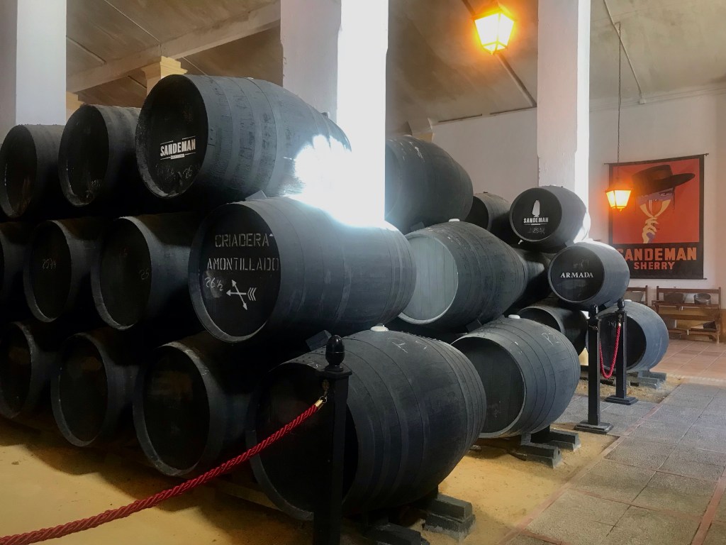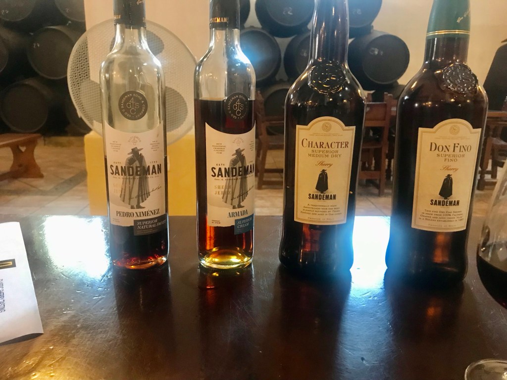 Sandeman is conveniently located right next to the equestrian school. Sherry is apparently big in the UK. In the US, not so much.The four different sherries we tasted, starting from right to left: dry fino, medium dry, medium sweet, and natural sweet. Both mediums were blends.Wine colors in the reverse order. Our favorite out of the four was the medium sweet sherry which tasted somewhat similar to port (Sandeman also has a winery in Porto, Portugal). However, we both prefer port over sherry based on this one tasting.