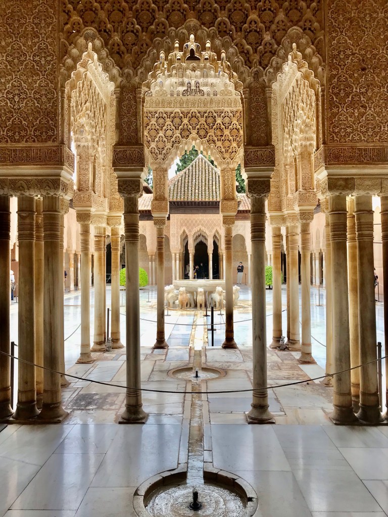 The beautiful courtyard of the Lions with the 124 columns that were designed and built to be earthquake resistant.The courtyard so named after the 12 lions surrounding the fountain. The four channels radiate away from the fountain provide water to the separate living quarters.When the Christians took over, they disassembled the fountain and complex hydraulic system to see how it works, but in the process rendered it nonfunctional. It was only in 2012 when the fountain started flowing again. Now looking back, the Muslims were so much more advanced in comparison. What would the world look like today if the Muslims had remained in power.The only original door left in the palace outside the Hall of the AbencerrajesThis hall is the Sultan’s living room. The name of the hall comes from the Abencerraje tribe, when 36 of them were beheaded here with their heads tossed into the center fountain.Dome of the room