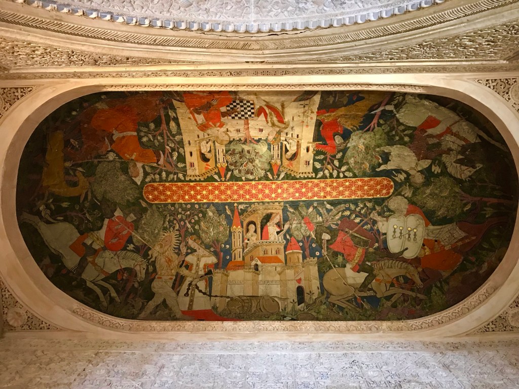 This room is the only one in the entire palace where you will find human depiction, and it gives you a glimpse of what life was like for the Royal family.Painting on goat leather depicts 10 of the 22 sultansThe Hall of Two Sisters is a reception hallWith windows low to the ground since seating was on cushions.The Partel garden stands on the ruins of the Partel palace.Joe saw this contraption and declared that it is used to keep the dogs out.However, I surmised that it was likely an irrigation system that helps divert water to irrigate the garden.