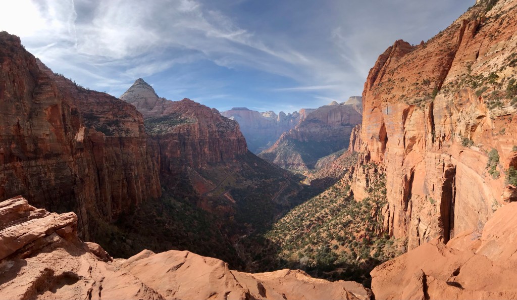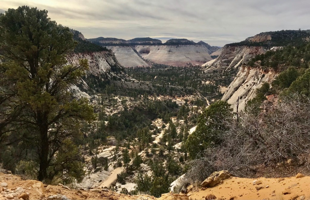 Since it was already too late to hike Angels Landing without encountering crowds on the trail, we decided on a less popular trail on the east side of the park – East Rim Trail.