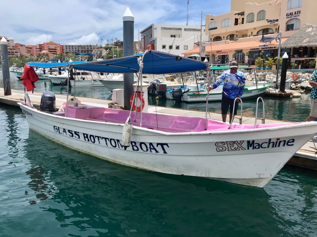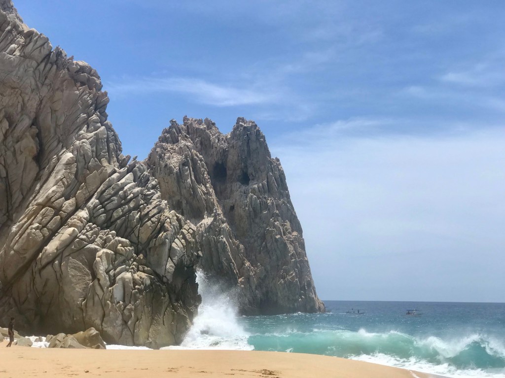 Our boat wasn’t the fanciest in the marina, but it sure had the most unique name.El Arco is where the Pacific Ocean and the Sea of Cortez meet.After touring the arch, the Sex Machine dropped us off at the Lovers Beach. This beach is special in that it spans across the two seas.The relatively calmer Lovers Beach shoreline of the Sea of Cortez.And the powerful and destructive (Divorce Beach) side of the Pacific Ocean, where swimming is prohibited.After an hour of brutal sun exposure on the beach, we were picked up by the Sex Machine to make our way back to town.