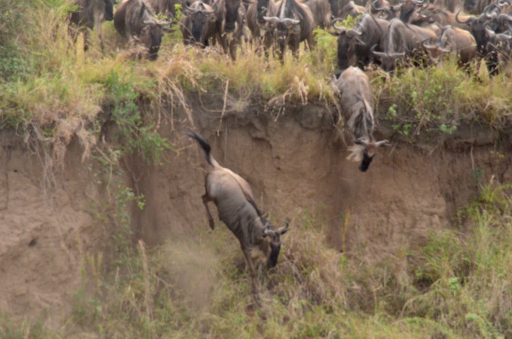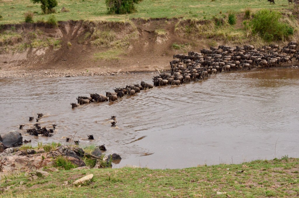 Watching wildebeests cross the Mara River requires a lot of patience. Sometimes, it takes waiting hours.