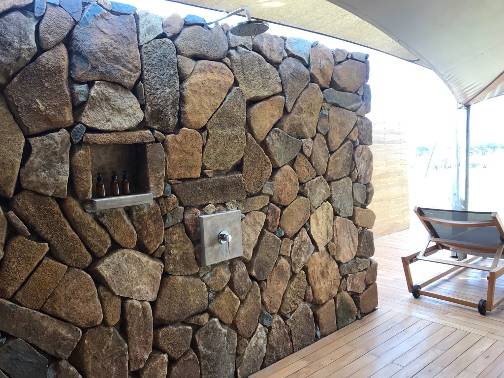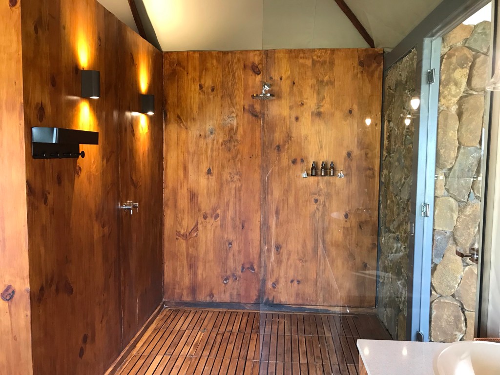 Large loungeDining deckDining roomBedroomBathroom with a soaking tubIndoor shower Outdoor shower The resident rock hyrax is not a rodent. It is actually related to the elephant. One trait they share is that they both have internal testes.The banded mongoose is another small animal found around camp.