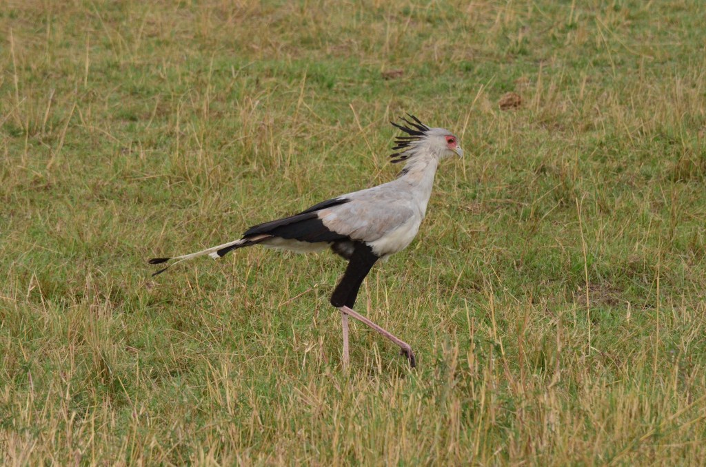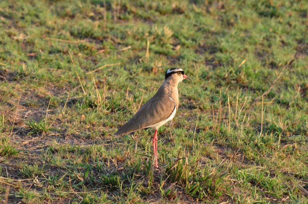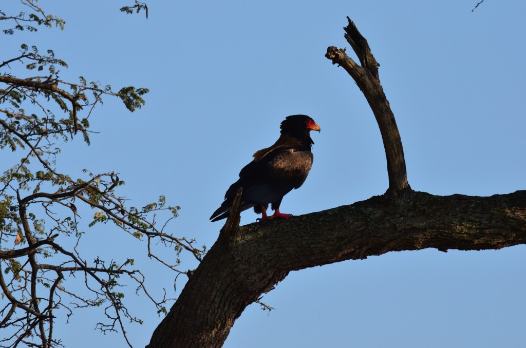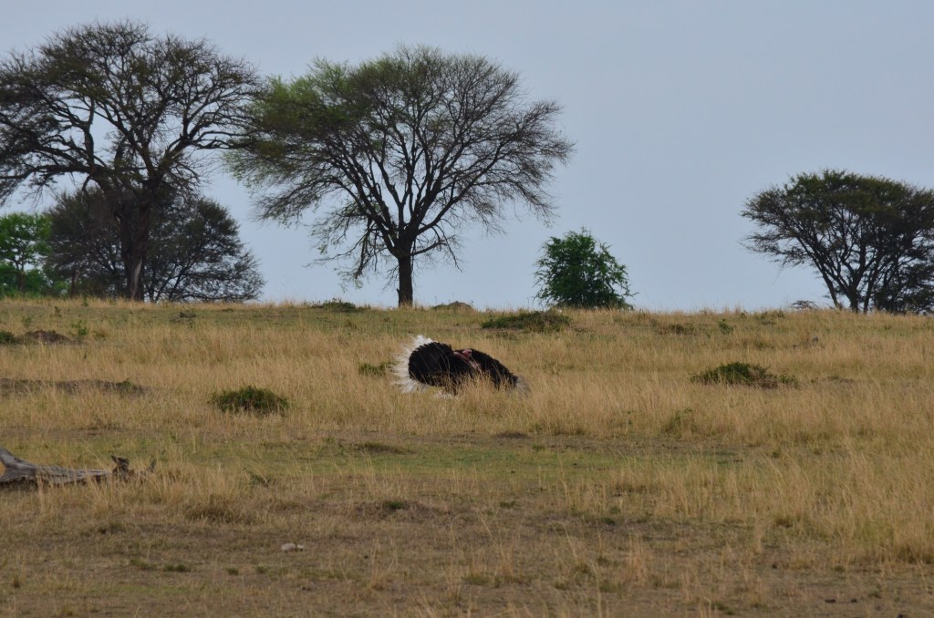 A male ostrich flapping his wing in an attempt to woo the female.The large secretary bird is believed to be named for the feathers on its neck resembling a quill pen tucked behind a secretary’s ear.A crowned lapwing loudly protested when we neared its nest.The Bateleur Eagle so named because of the way it cants from side to side during flight, like a juggler. A “juggler” in French is “bateleur”.