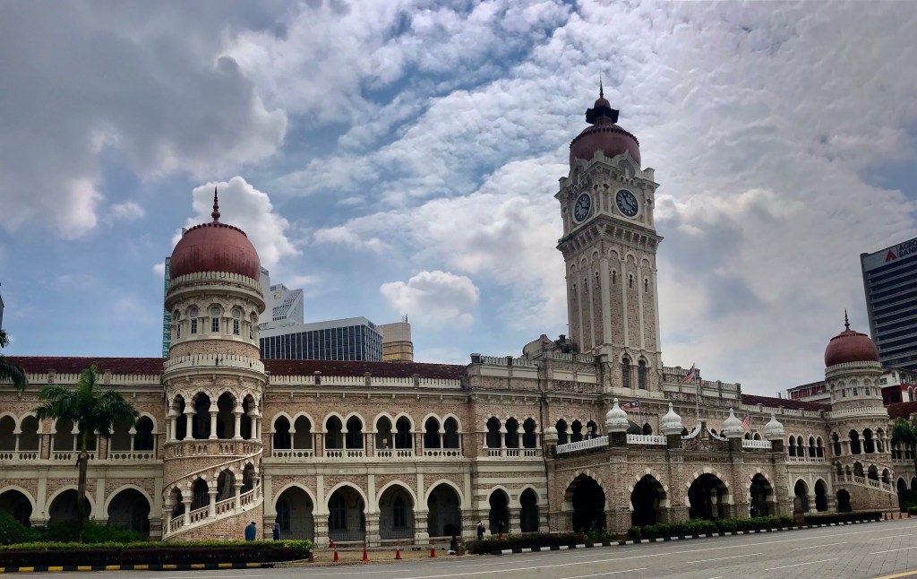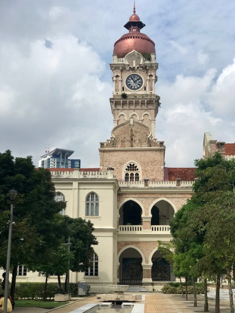 There is something about Islamic architecture that is especially aesthetically appealing to the eye. It has both clean soft lines, as well as ornate geometric patterns. The Mughal style is an Indian Islamic architecture that consists of a large onion-shaped round dome, thin minarets on the sides, and delicate ornamentations. One such famous Mughal architecture is the Taj Mahal in Agra India. In the late 1800 to early 1900 Malaysia, a British architect by the name of Arthur Benison Hubback designed several buildings in the Mughal style. Two of those were the Jamek Mosque and the Sultan Abdul Samad Building.