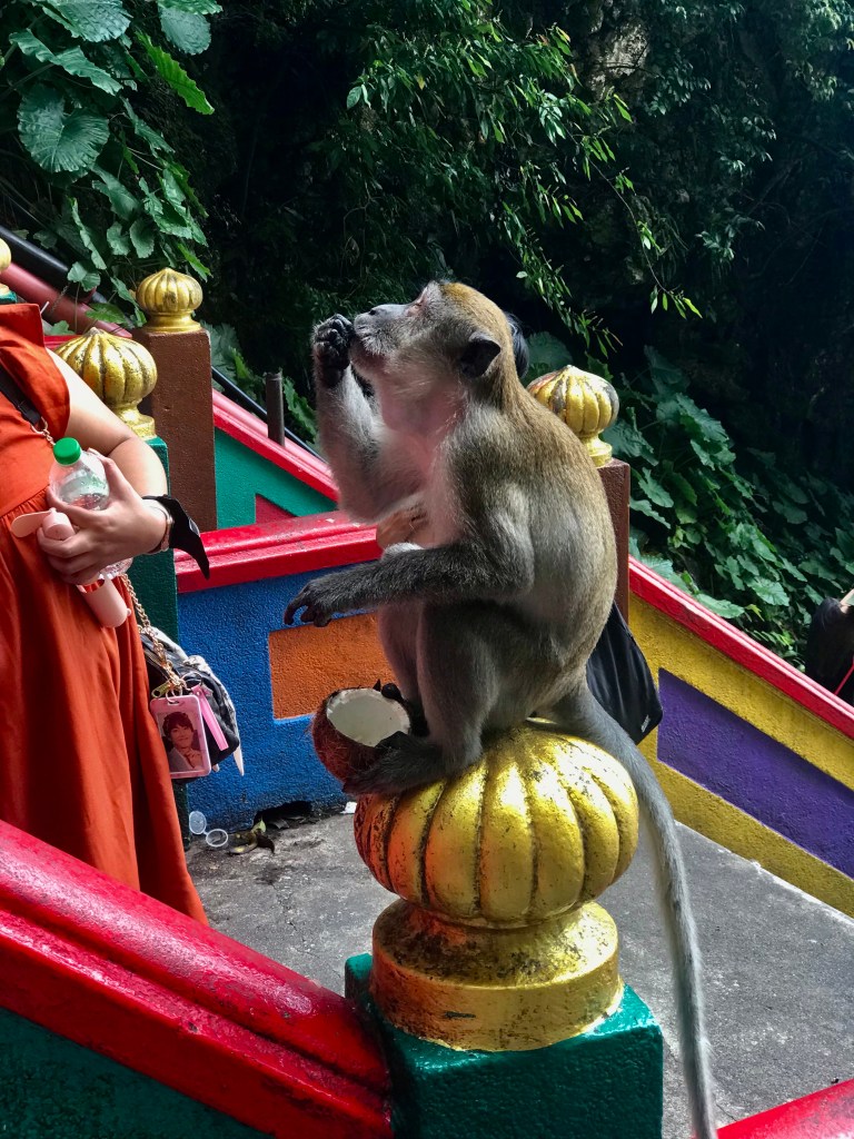 Malaysia is a Muslim predominant Malay population with a quarter Chinese and a tenth of Indians. This melding of culture and cuisines explains why their food is so tasty. It also gives you a city with interesting sights and sounds. Hearing the call to prayer in Istanbul is a matter of fact, but hearing the call to prayer while standing outside a restaurant in Chinatown in Kuala Lumpur is both discombobulating and yet beautiful at the same time. Having already visited Chinatown, and admired Islamic architecture, we had one more site to see – the Hindu temple in Batu Cave.