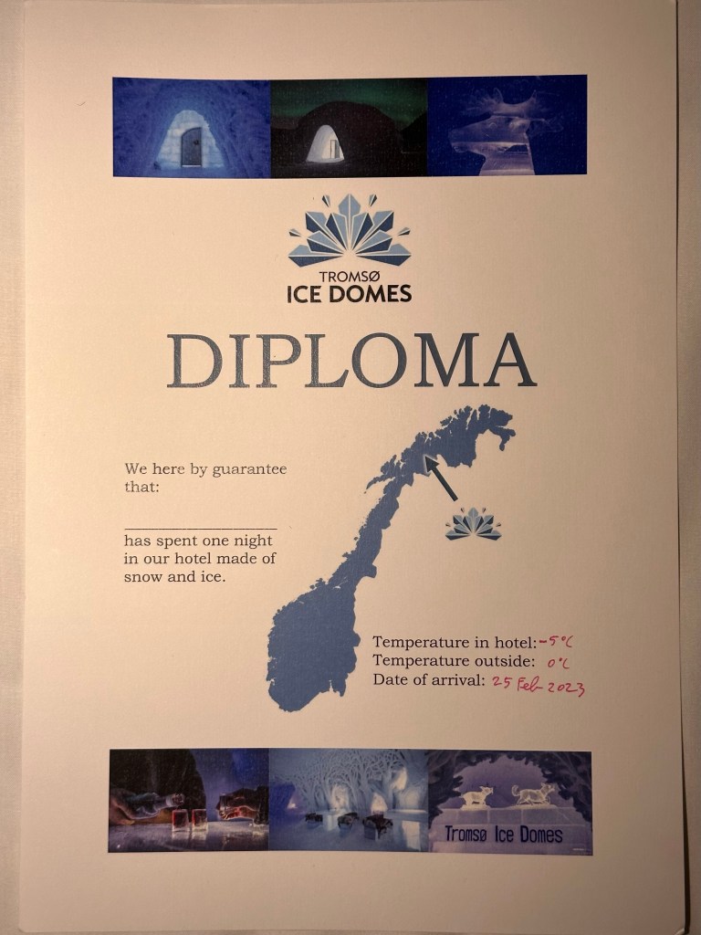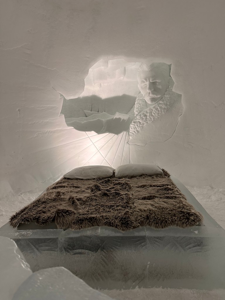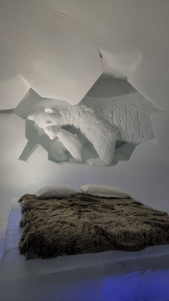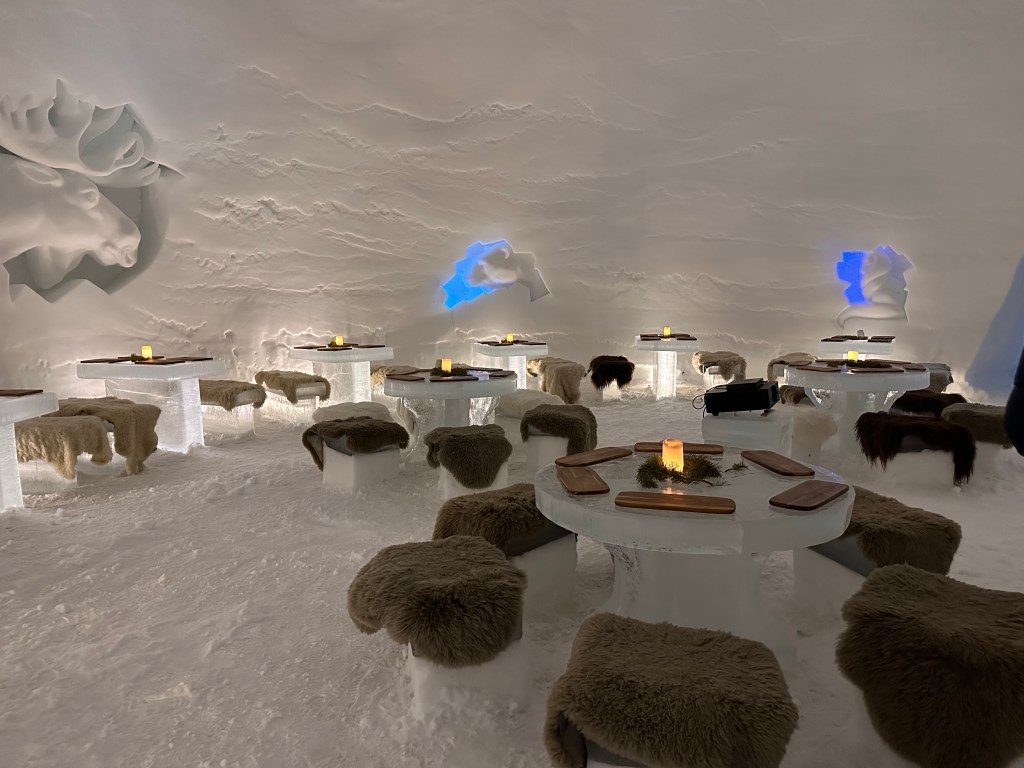 Dinner was followed by a tour of the ice dome. This year’s ice dome was constructed over a period of 6 weeks (normally completed in 8 weeks, but this year’s snow came late) with the theme revolving around the Norwegian explorer – Roald Amundsen.