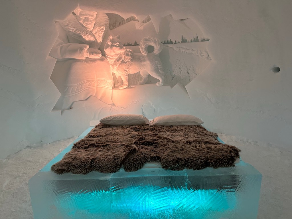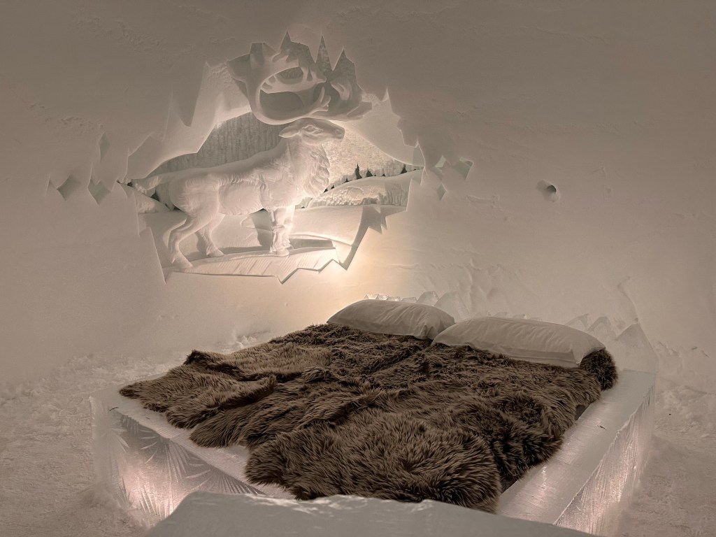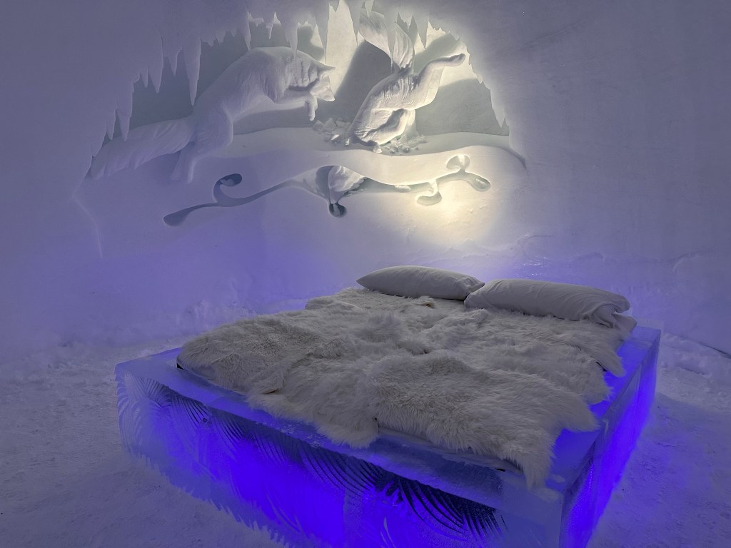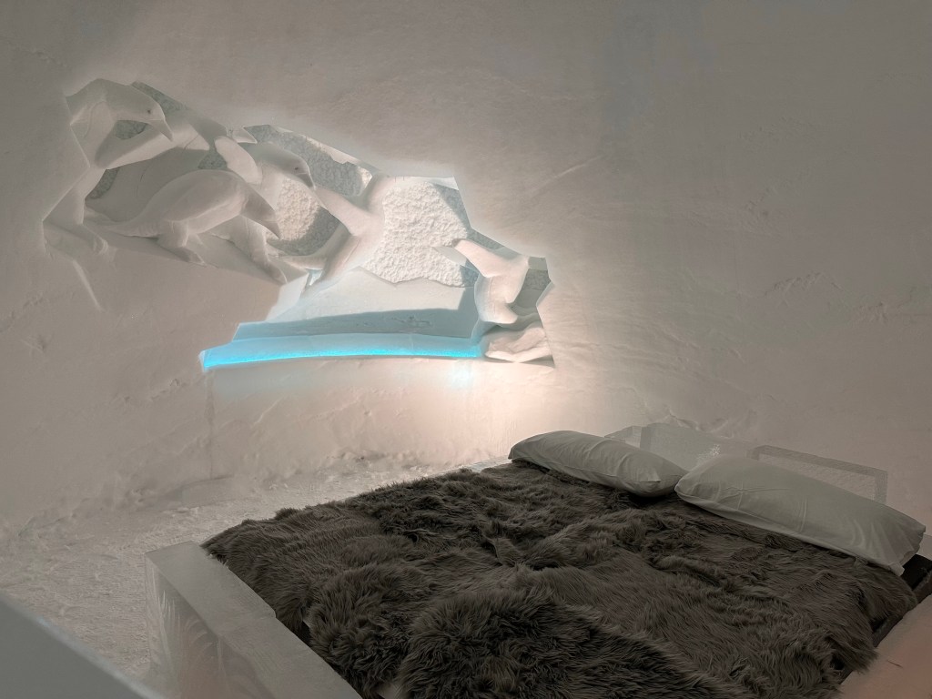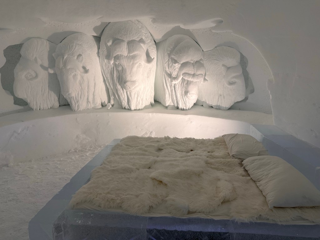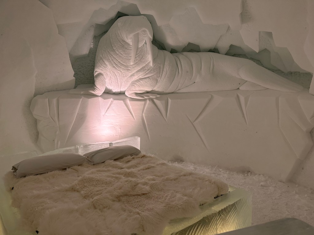 Eight ice sculpture artists were commissioned to sculpt murals in the eight hotel rooms.