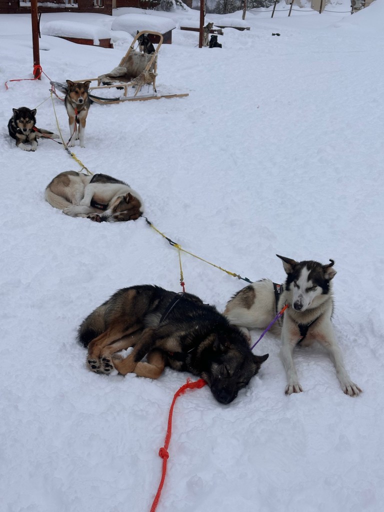 It wasn’t until during briefing when I found out that we would take turns mushing. Not only that, the guide said that the musher would have to run behind the sled during all the uphill sections, in deep snow. As soon as Peggy heard that, she sidled up to me and asked if I was able to do it. Trusting my years of endurance training, I reassured her that it was doable. However, I was worried about the other two. At the end of the briefing, an older couple voluntarily dropped out. But Faith and Munerah stuck with the plan, and they ultimately did well enough to survive the 7-8km journey.