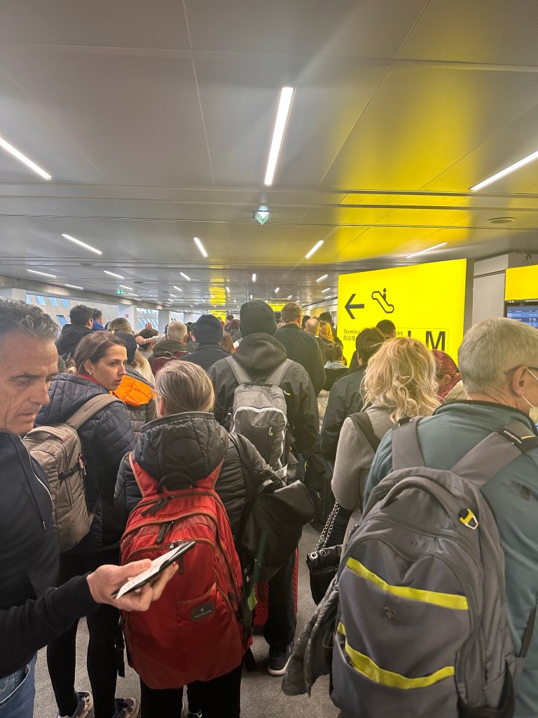 The crowd at CDG waiting to walk up the escalator to border control. And I had only an hour layover to catch my flight back to LA.