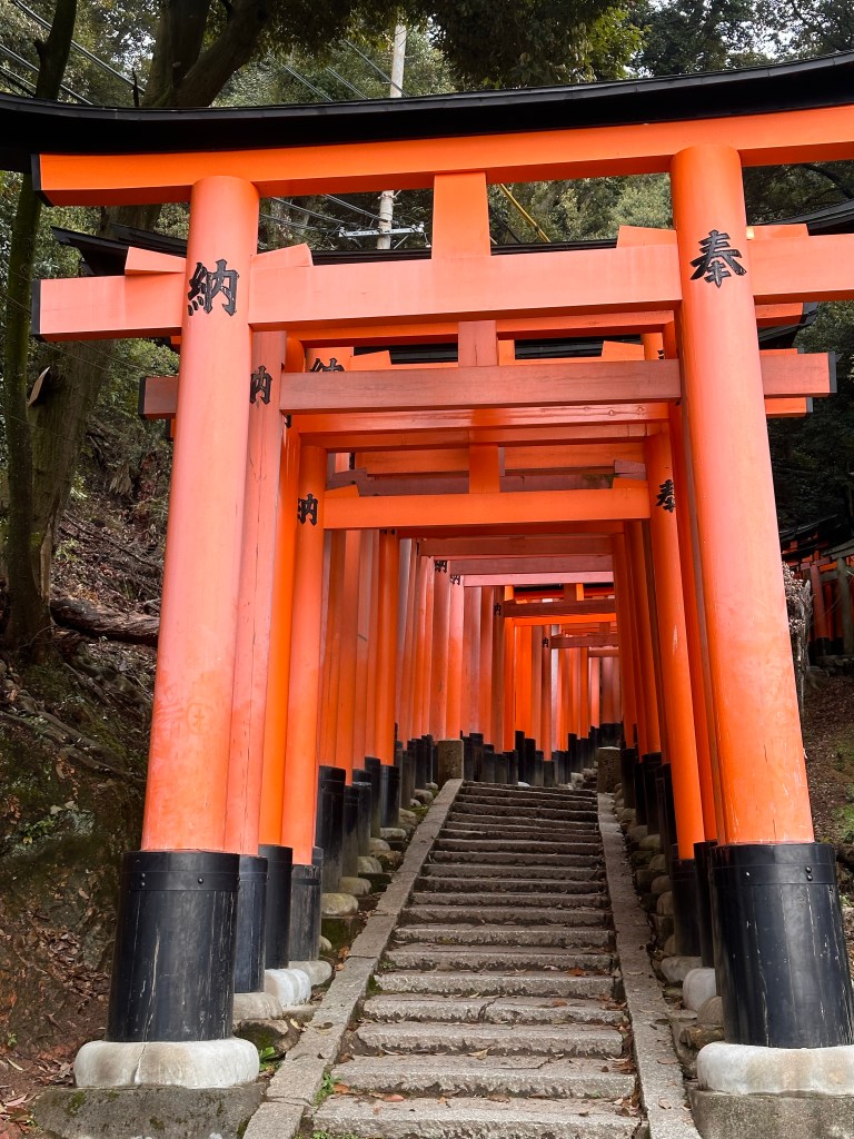 The Fushimi Inari shrine is dedicated to the Shinto divine being for rice and agriculture, and the custom of donating a torii (gate) in exchange for a granted wish dates as far back as the 1600s. To this date, there are a thousand torii along the 2.8 mile trail.