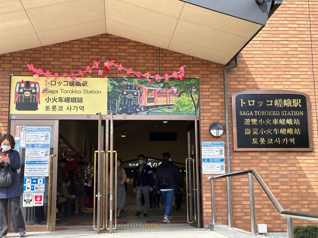 Opting not to linger with the horde, we decided to take the scenic Romantic Train that travels between Arashiyama and Kameoka. This train was actually not on my radar at all, but I found out about it by accident. Earlier in the morning, as the throng of tourists alighted the rail, leaving behind empty cars, a Taiwanese tourist frantically asked us if this was the stop for the 小火車 (the little train). Knowing next to nothing about a “little train”, I simply told him this was the “bamboo stop”. However, after exiting the train station, we saw a separate rail station.