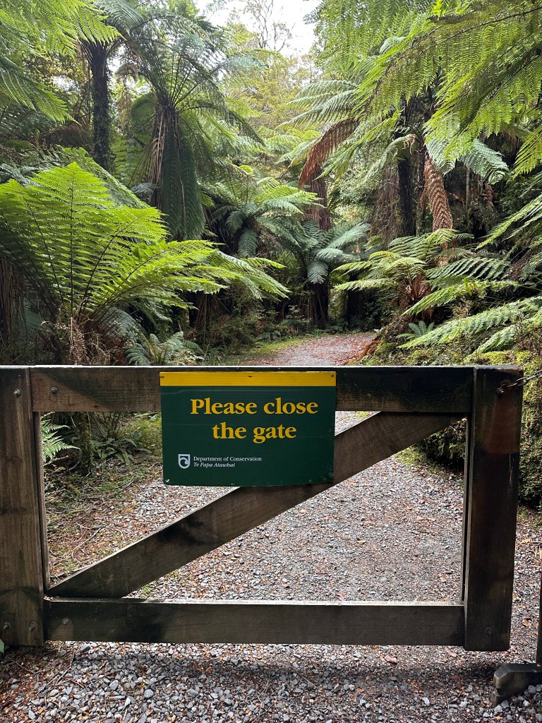 No signage to explain why the need to keep the gate closed.This trail requires a bit more walking to reach the falls.There is a crystal clear blue stream separating you from the waterfall.But that’s not what makes it special It’s the herd of cattle that wanders along the rocky path between you and the waterfall that makes this place just a bit more interesting. This explains the need to keep the gate closed.Thunder Creek Falls, so named for the sound it makes.Fantail Falls seen across the clear stream.Close up