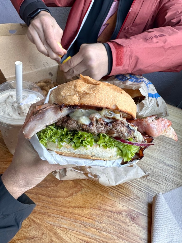 Beautiful Arrow Junction looks like something out of a fairy tale.Finally in Queenstown, where the town reminds us of any small North America tourist town – Banff and Jackson Hole were the first to come to mind.And dinner at Fergberger, touted as possibly the best burger in the world.DeluxDouble pattieGenerous portions, but wouldn’t necessarily go as far as calling it the best in the world.