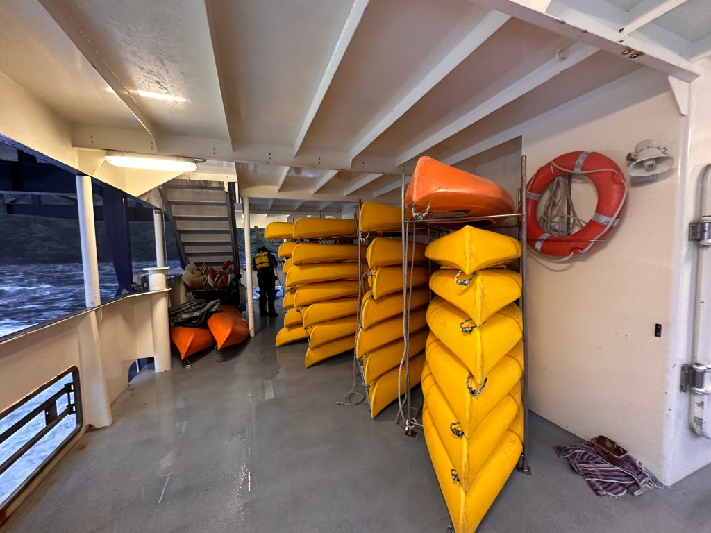 As part of the tour, the cruise schedules water activities such as kayaks and tender boats to get closer to the fjords, rain or shine. On a sunny calm day, I would have picked kayaking. Unfortunately, this was not the day. To our surprise we were the only ones in the tender boat, while the rest of the younger folks picked kayaking.