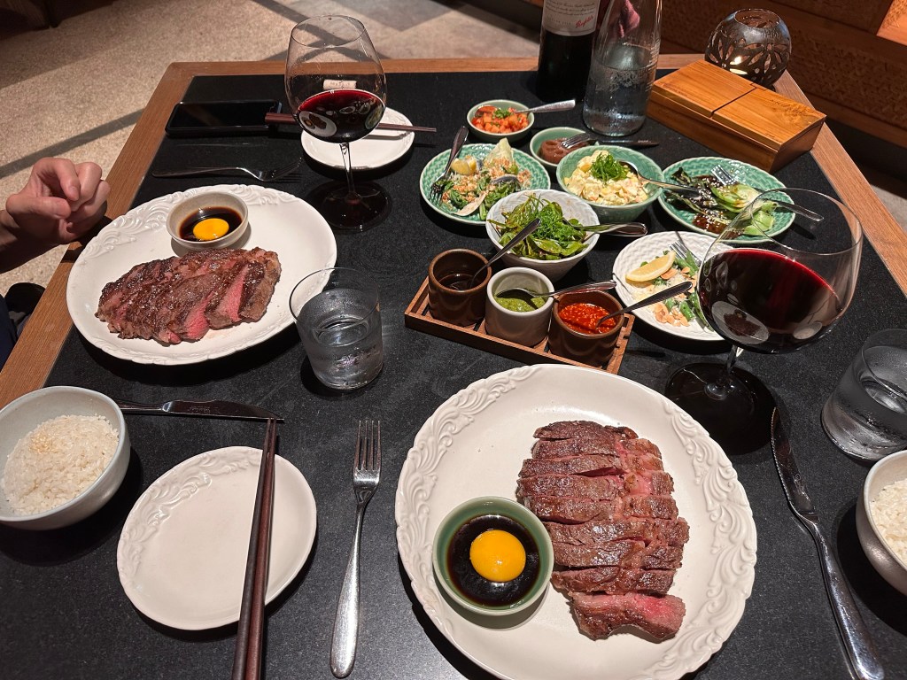 Large living spaceDuring evening turn downs, staff will close all doors to the bedroom to keep the room as cold as possible to ensure a good nights sleep. Absolutely brilliant move.Spacious bathroom I can seen the stone floor tiles not age quite as well over time.This is the best part about the bathroom. Fellow bidet users will appreciate that this is no ordinary washlet. It’s a TOTO. An absolute welcome sight after leaving Japan almost 2 months ago, and roughing it ever since.A separate half bath also equipped with a washlet.Large terraceFree-to-raid minibar (minus the alcoholic drinks). Everything consumed is restocked the following morning.Two birthday cakes in a day! Never have had that happen before. This one was delivered to our room, and luckily no “Happy Birthday” tunes accompanied this cake.The patterns and colors in the room contrast against the dark stones, creating a cozy and aesthetically pleasing feel.Fisherman’s Club is one of four onsite restaurants. The Andaz executive chef brings with him 15 years of experience at high end Hyatt properties (in Berlin, Amsterdam, Seoul, and Tokyo), and it shows in the quality of food that is served.Grilled seafood platter at Fisherman’s ClubThe requisite birthday steak dinner at the Asian steakhouse, FireFox. We couldn’t figure out what to do with the raw eggs in soy sauce, so we ate around it.Yummy Korean bingsu with a twist.