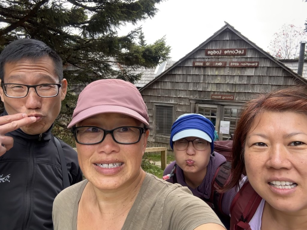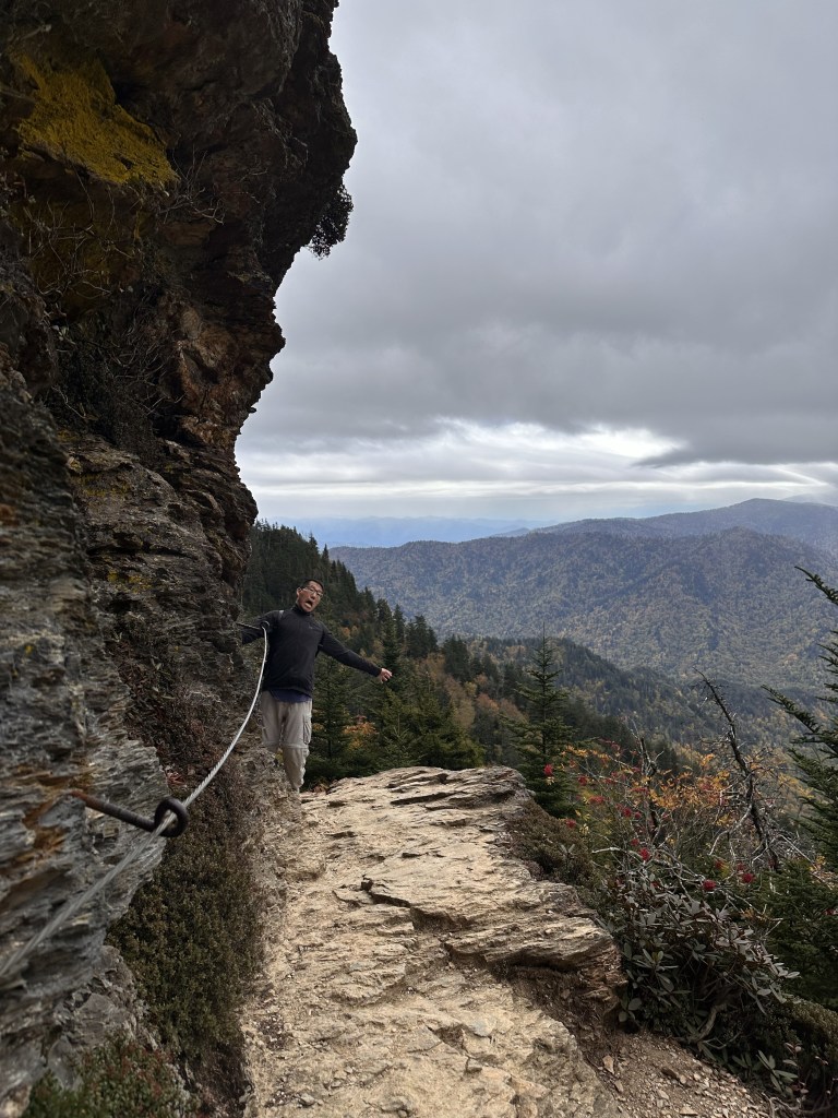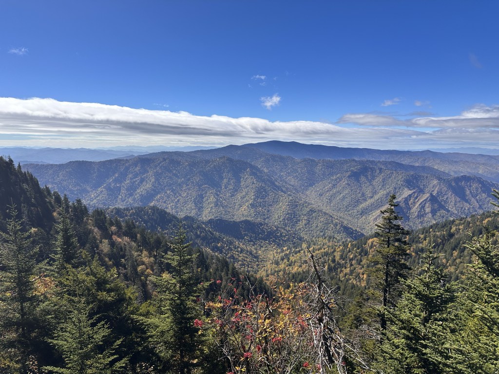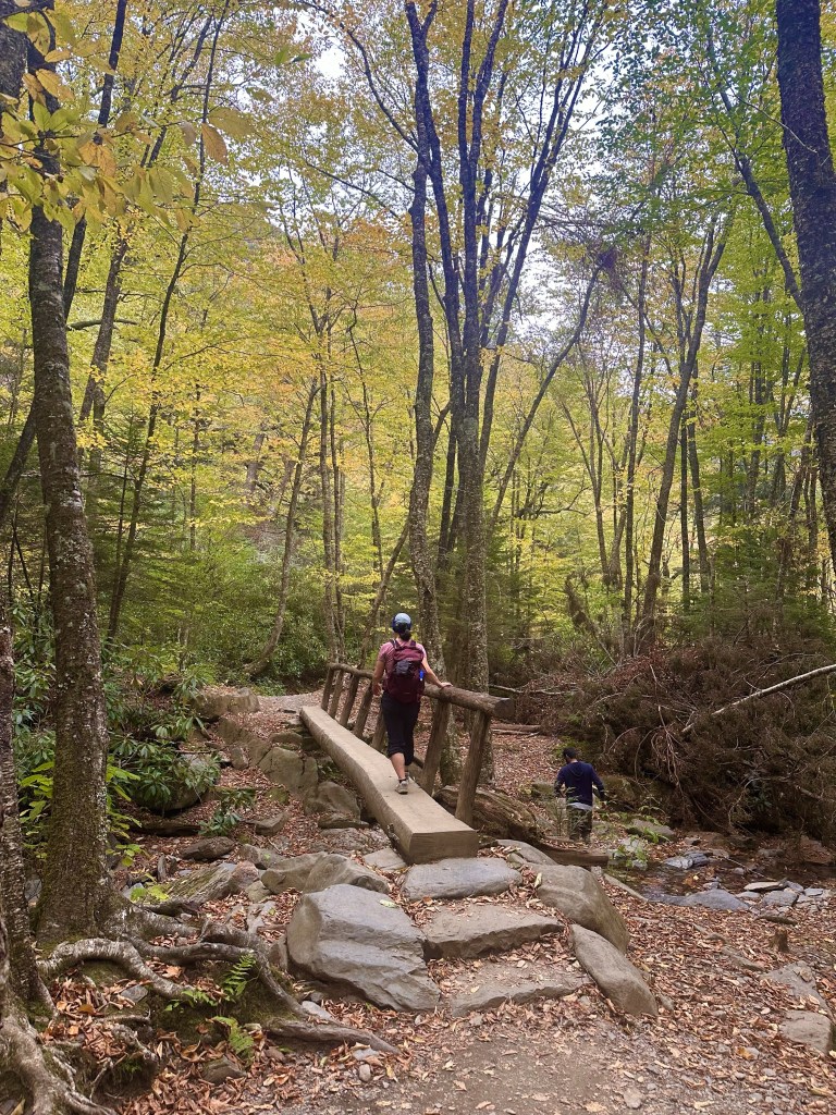 We were awarded with more colors along the trail.Sweeping VistasFinally got to see what I came here for!Photo op at Mt LeConte lodge, the highest guest lodge in the Eastern US. Reservations for lodges are open every October for the following year, and are normally sold out shortly after.Back near the bottom, soaking tired feet at Arch Rock.