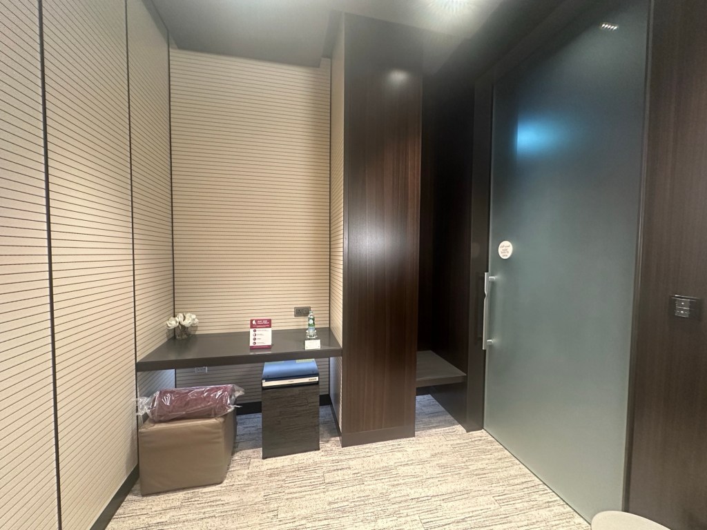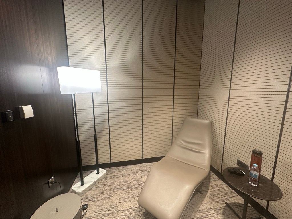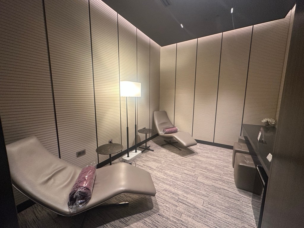 And the quiet area on the west side of the lounge has shower facilities, a spa, and various seating arrangements.