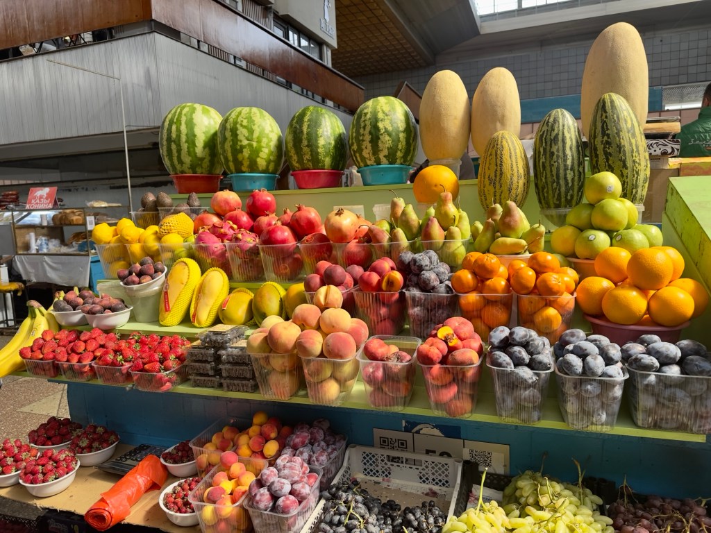 Unlike some markets in other countries, there were very few tourists strolling through. Most tourists in Almaty hail from Russia and China. Few Americans make it this far, as locals are surprised when they hear that we come from the US.