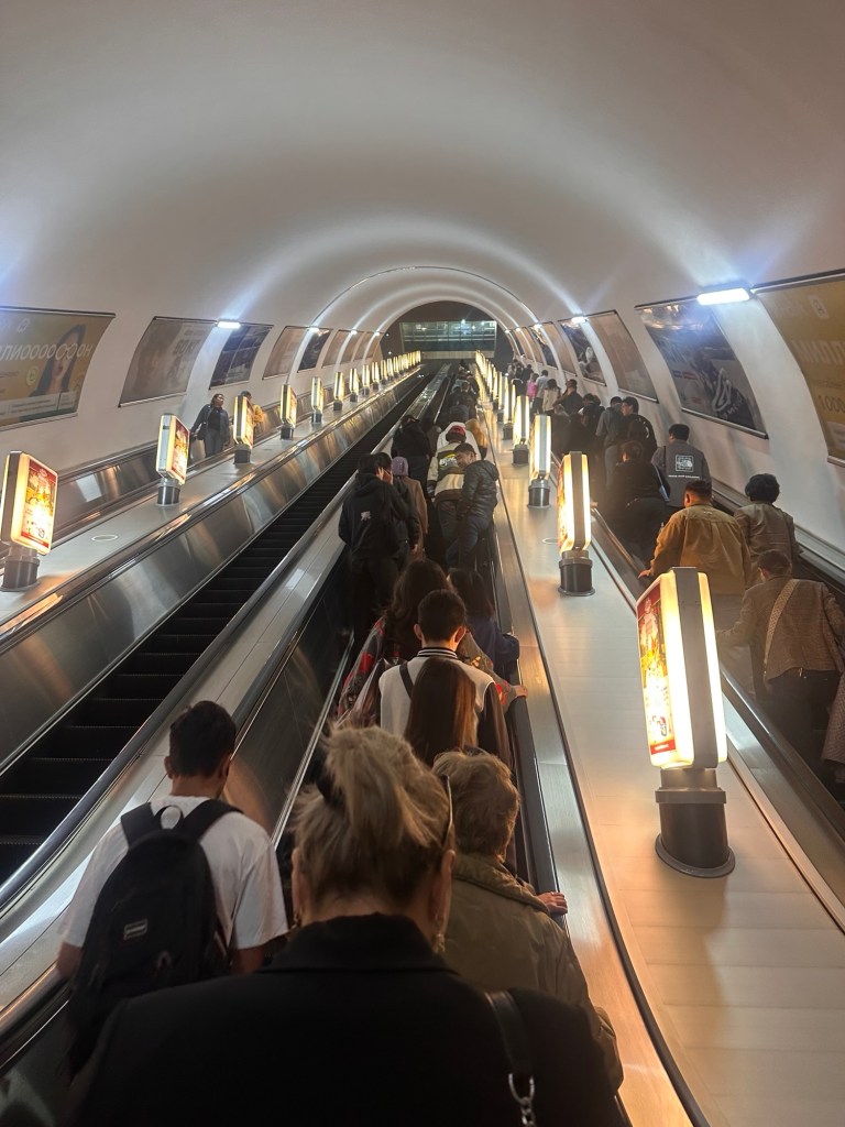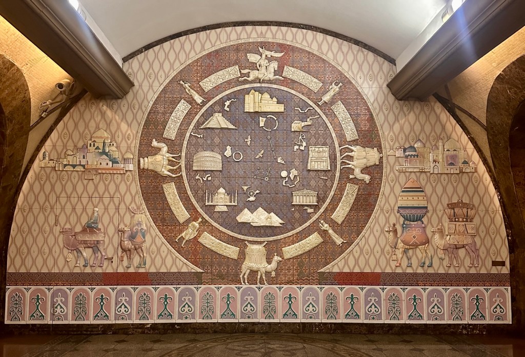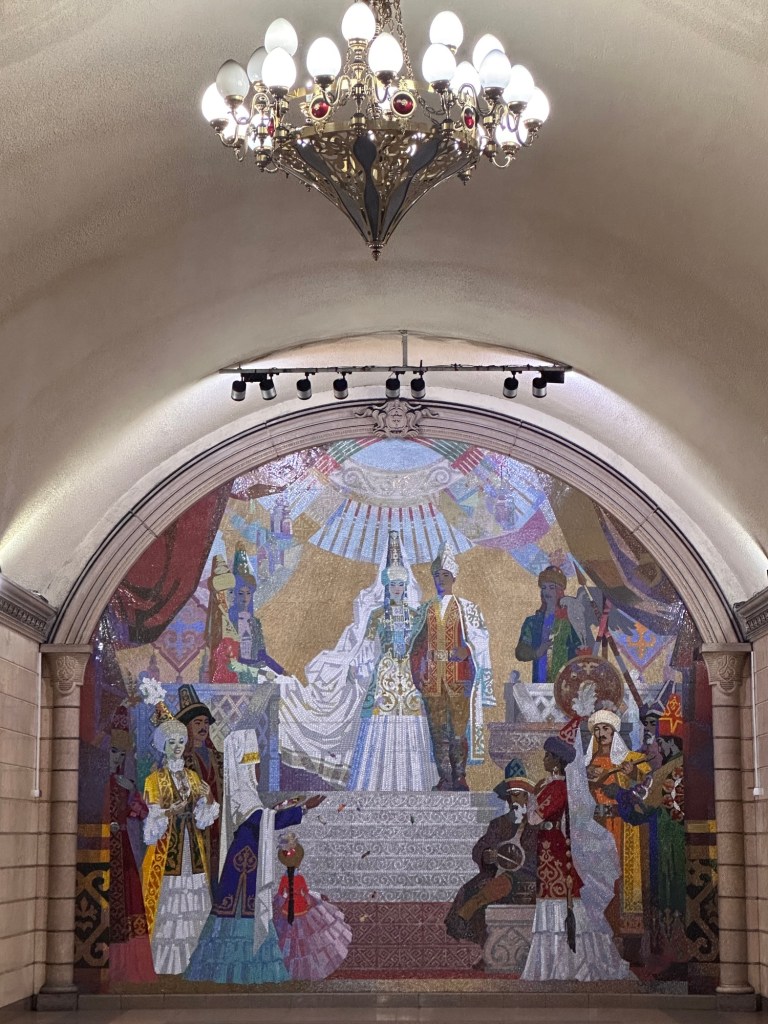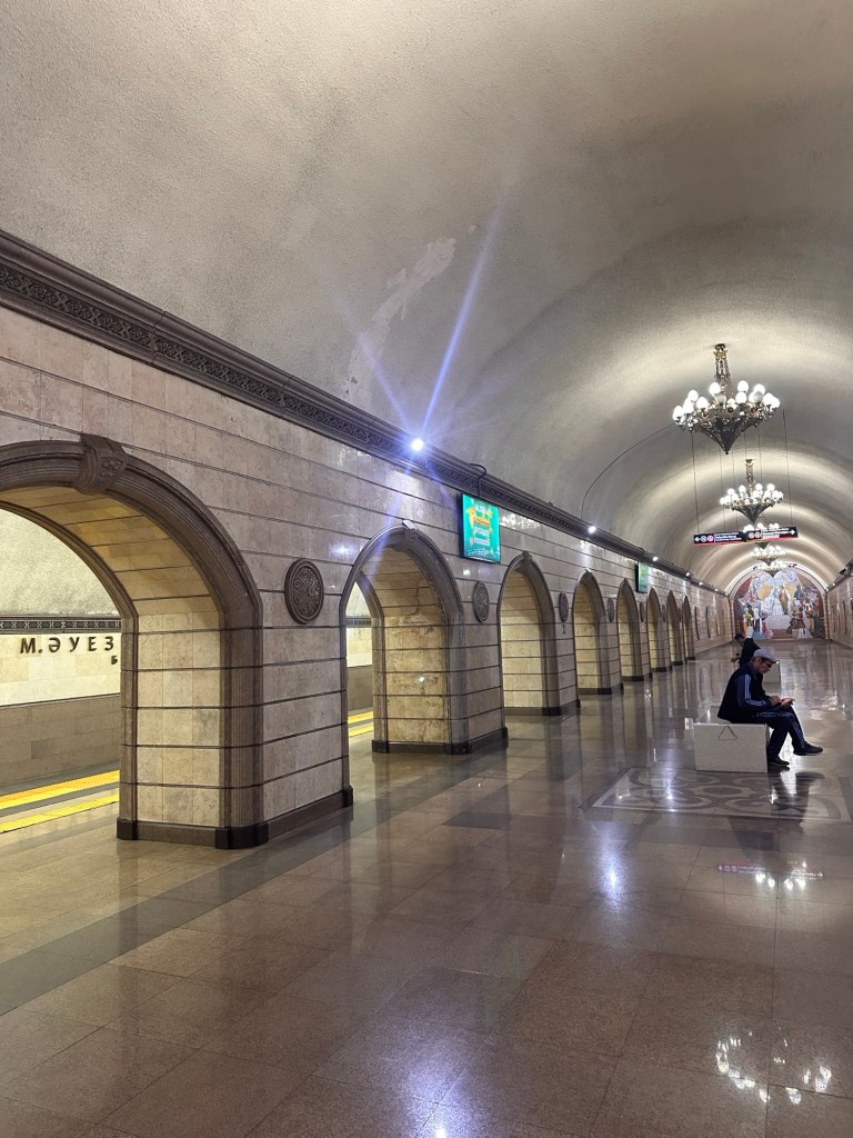 It is a pedestrian haven with ample transportation options. A lot of the younger folks can be seen zipping around the city on public e-scooters. Besides buses on surface roads, there is the single line subway system that connects 11 stops along the 8-mile route. From start to finish, construction of this one line took 23 years (1988-2011). Cost of a ride is only 120 tenge, or 25¢.