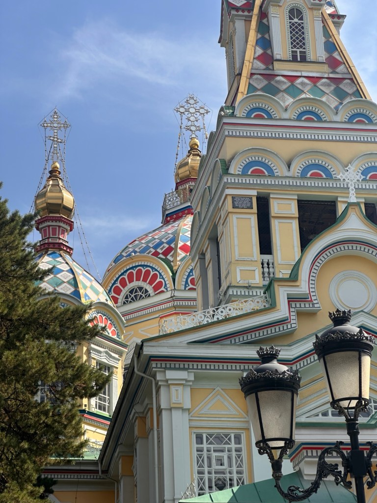One of the major sites in the city is the Ascension Cathedral, a Russian Orthodox Church, in the Panfilov park near the Zhibek Zholy station.