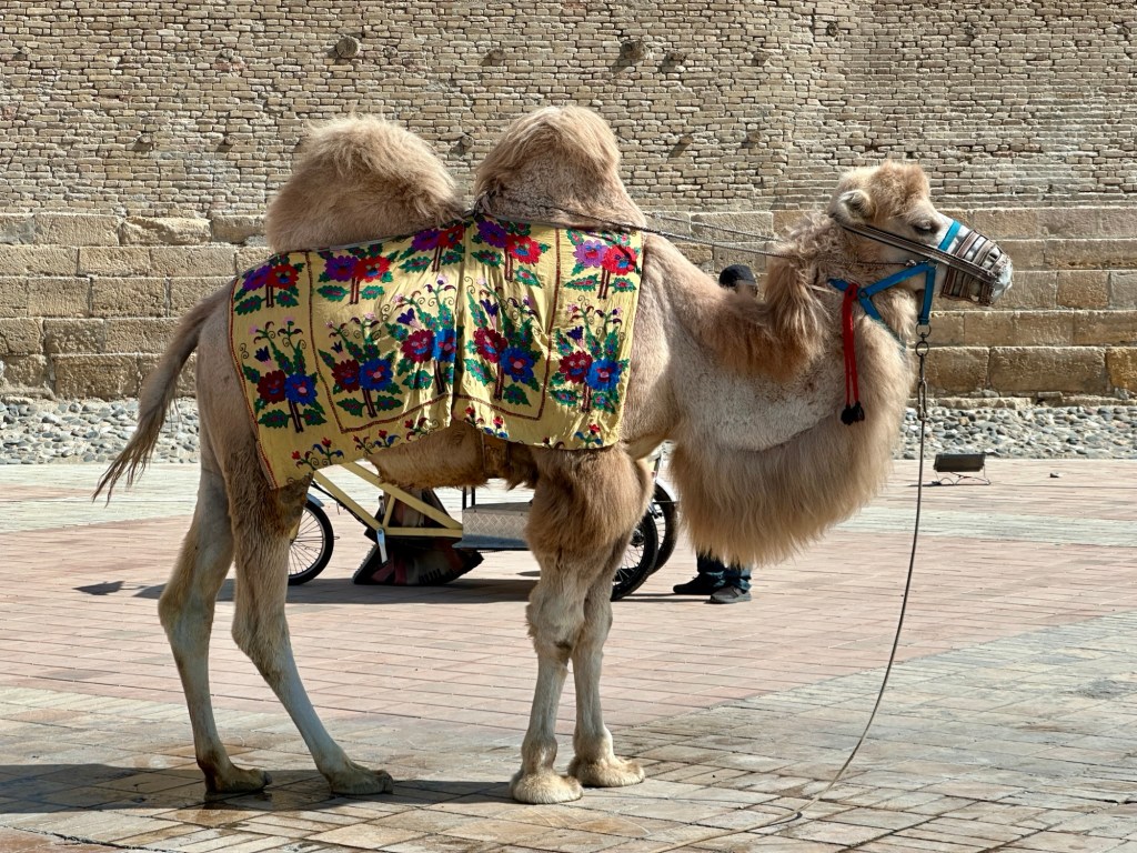 The Ark houses several small museums, and is a good place to visit if you haven’t already been to a gazillion museums in the last 4 weeks like we have. It was a bit underwhelming for us.Of some interest are the coronation hallAnd this tiny Koran.For size comparisonIn contrast to the tiny Koran are the imposing outer walls..A Bactrian camel outside the Ark.